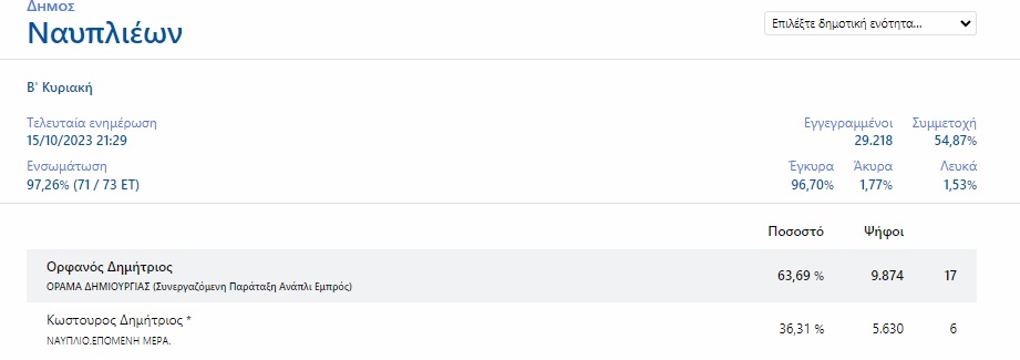 Με ποσοστό που ξεπερνά το 60% ο Δημήτρης Ορφανός παραλαμβάνει τη σκυτάλη του δήμου Ναυπλιέων.