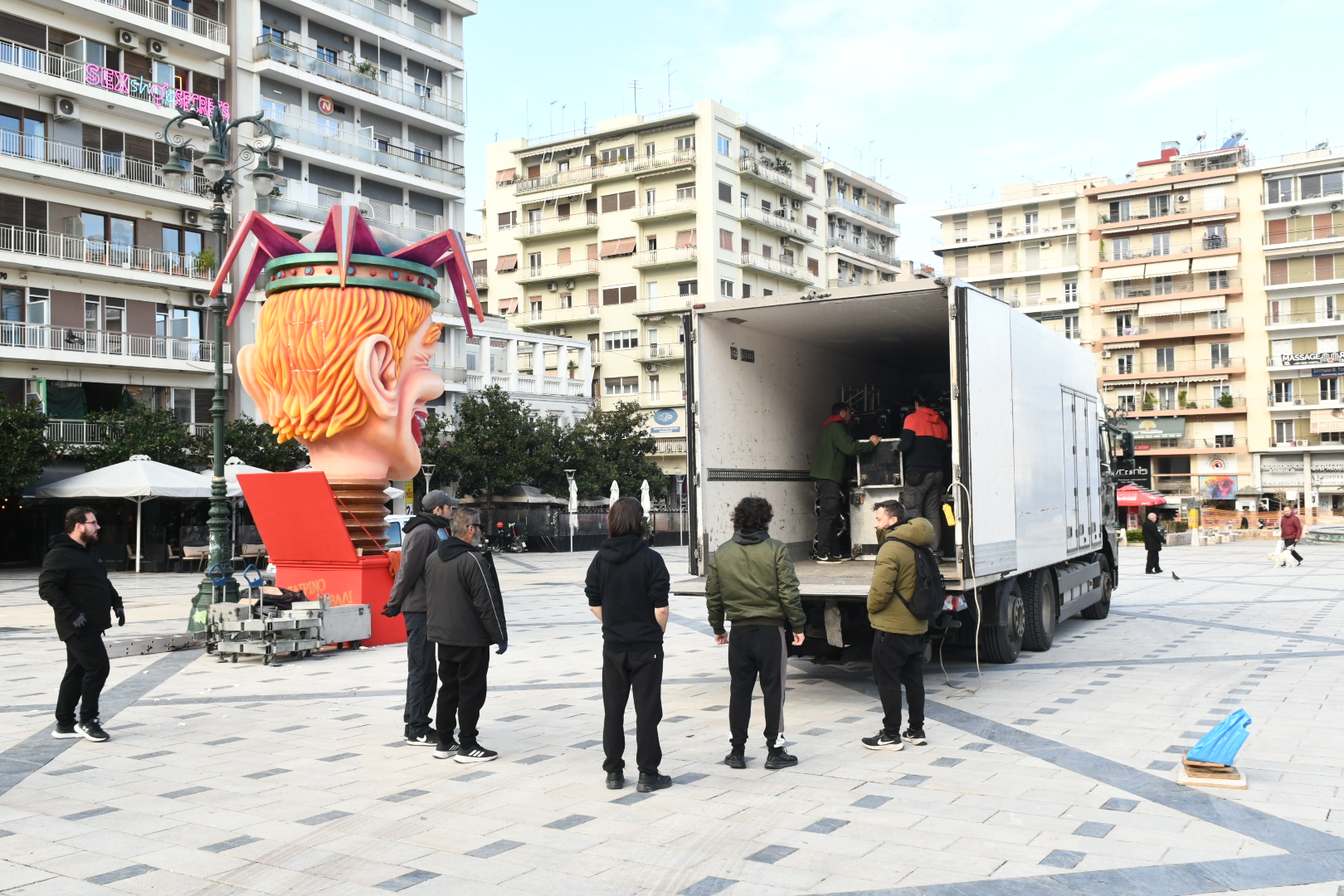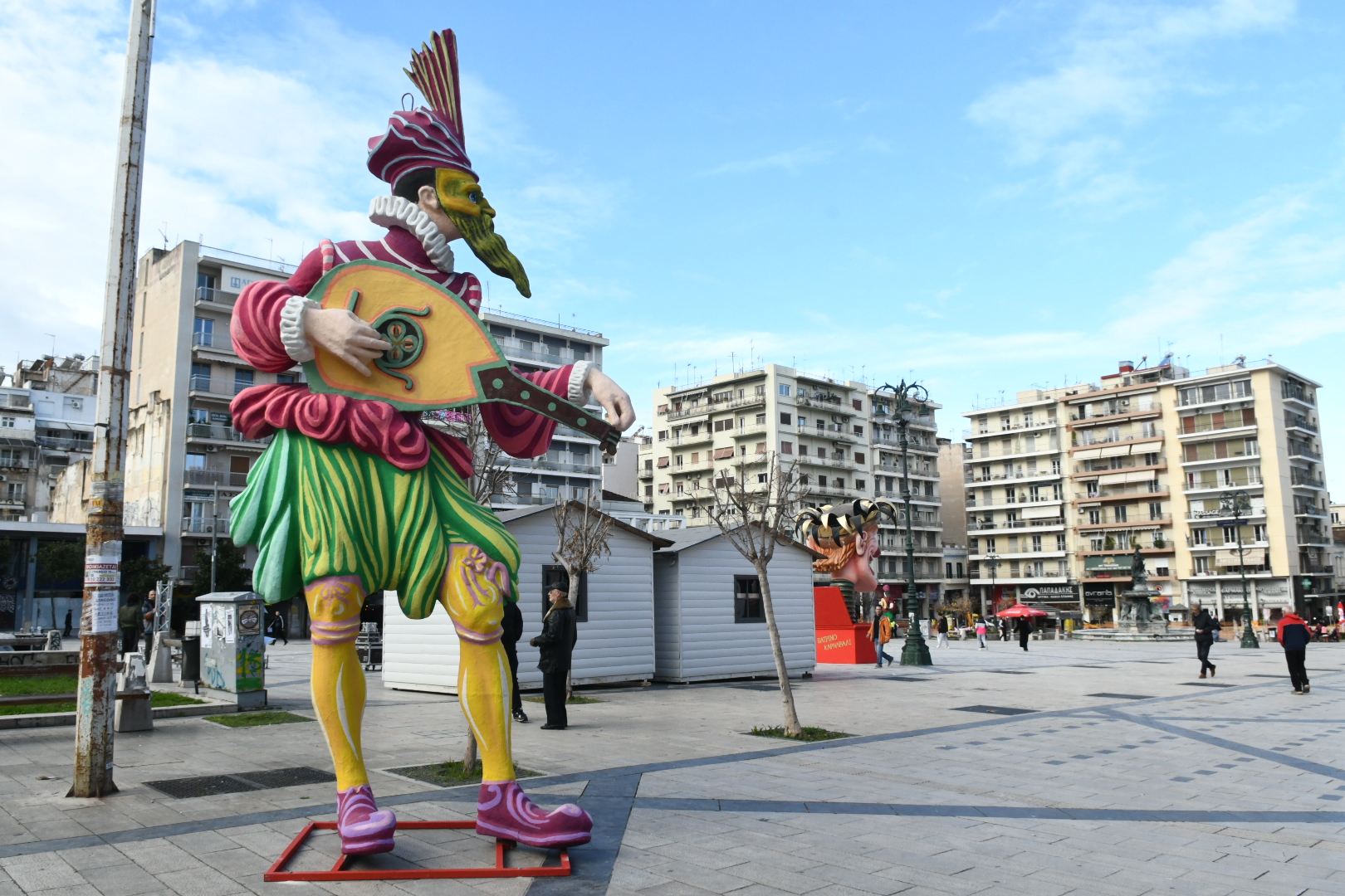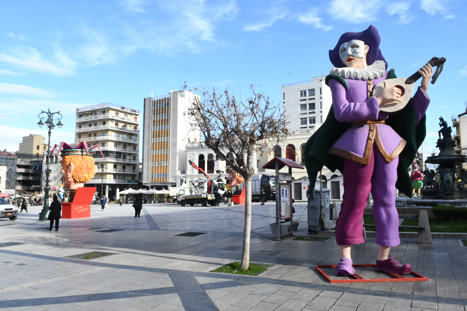 Η πλατεία ντύνεται στα καρναβαλικά με μπάστακες και καρναβαλικά στοιχεία, ενώ με την ολοκλήρωσή του καρναβαλικού διακόσμου η όψη της πλατείας θα δίνει την εικόνα του ιδανικού σκηνικού για τις καρναβαλικές δράσεις και τις ανέμελες βόλτες μας τις μέρες και τις νύχτες του Καρναβαλιού στην Πάτρα.