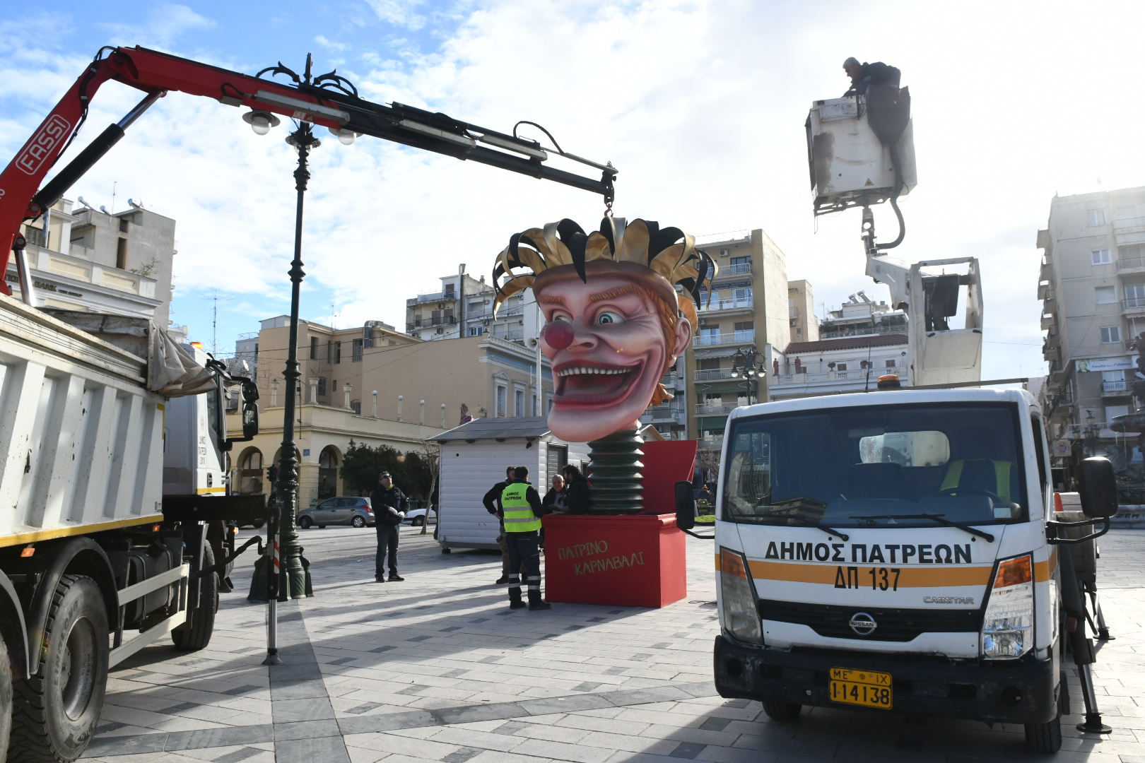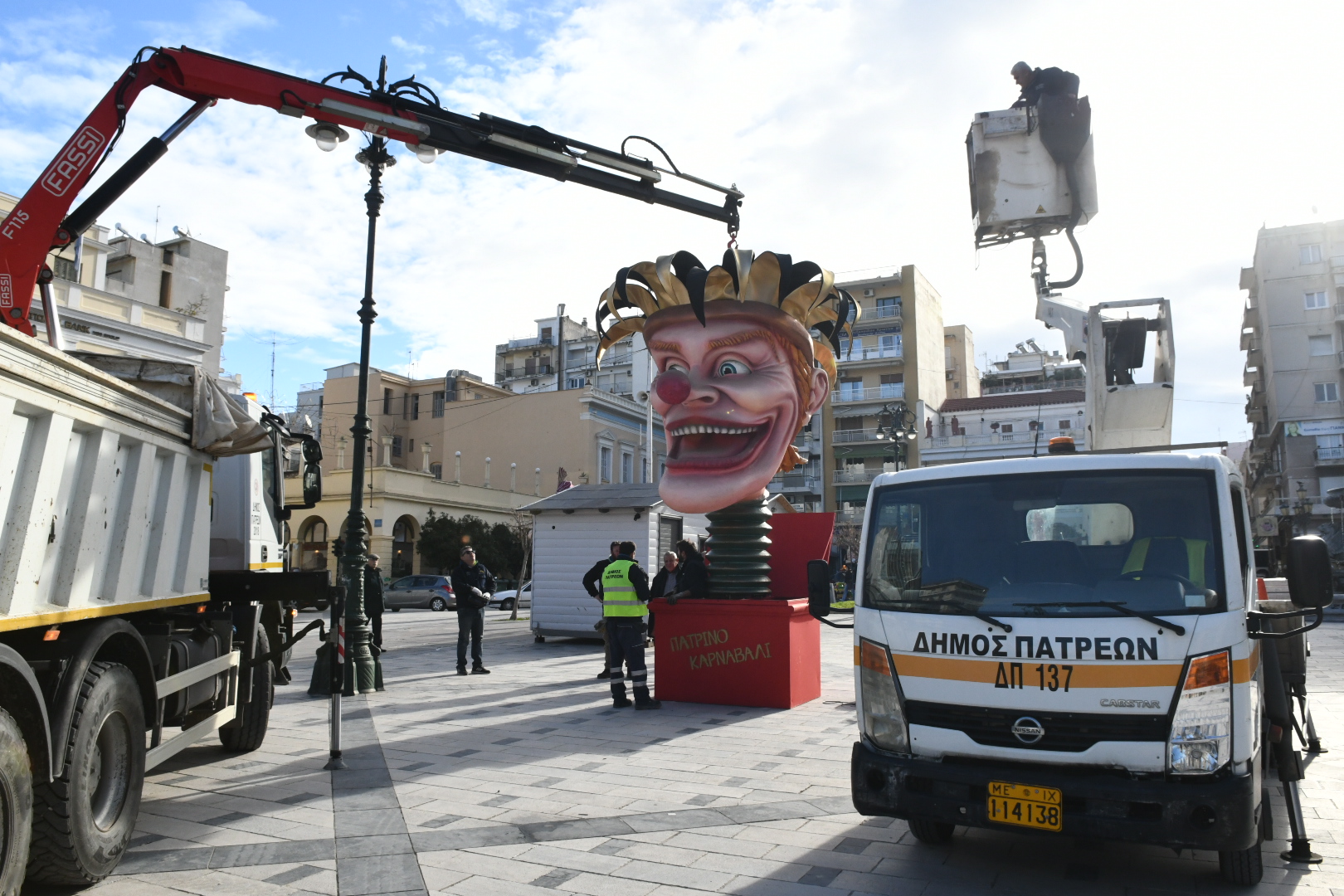 Παράλληλα με εντατικούς ρυθμούς τα συνεργεία των υπηρεσιών του Δήμου συνεχίζουν να τοποθετούν τους μπάστακες και τα λοιπά στοιχεία του καρναβαλικού διακόσμου σε όλη την πόλη και εκτός σε μια ευρύτατη έκταση.