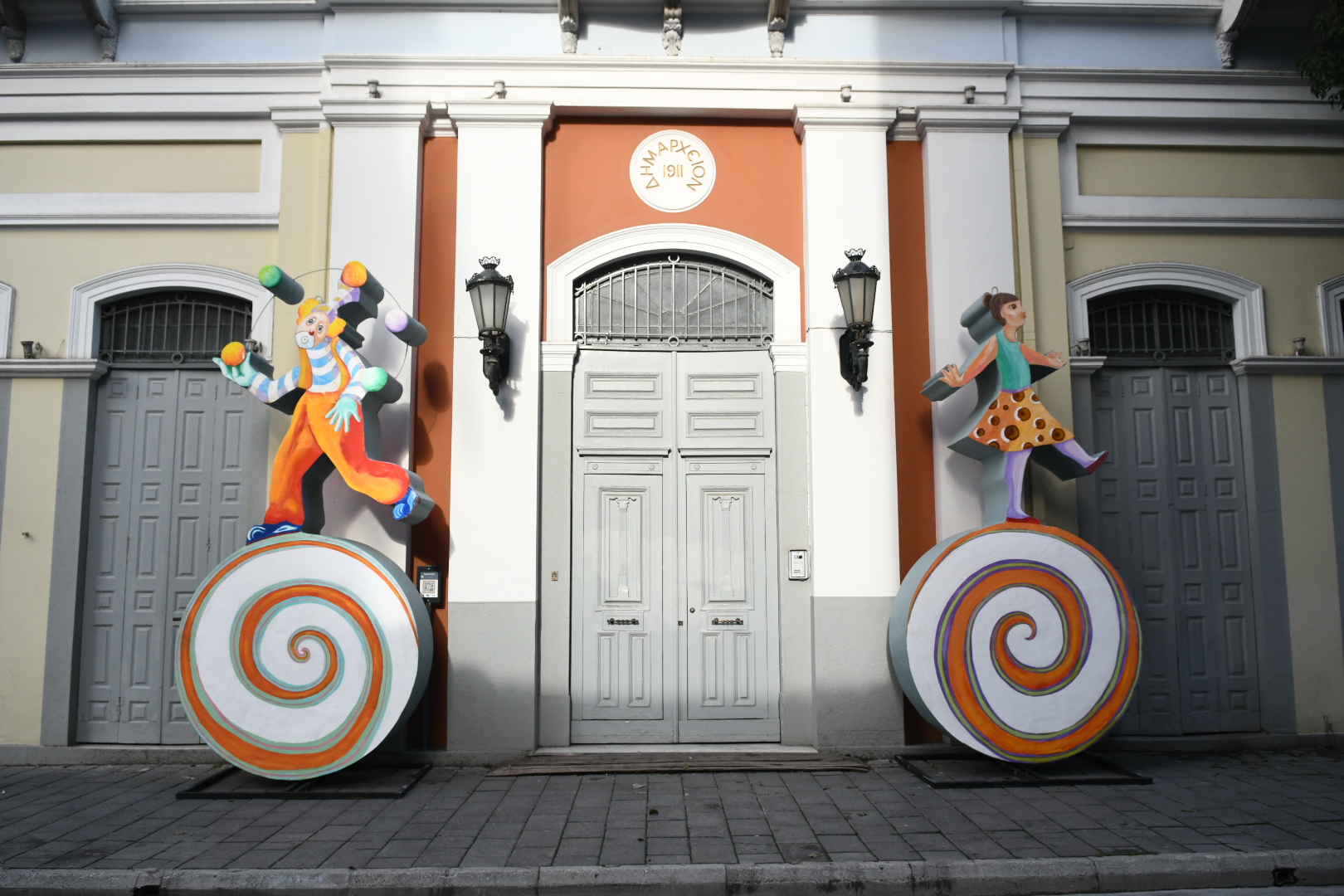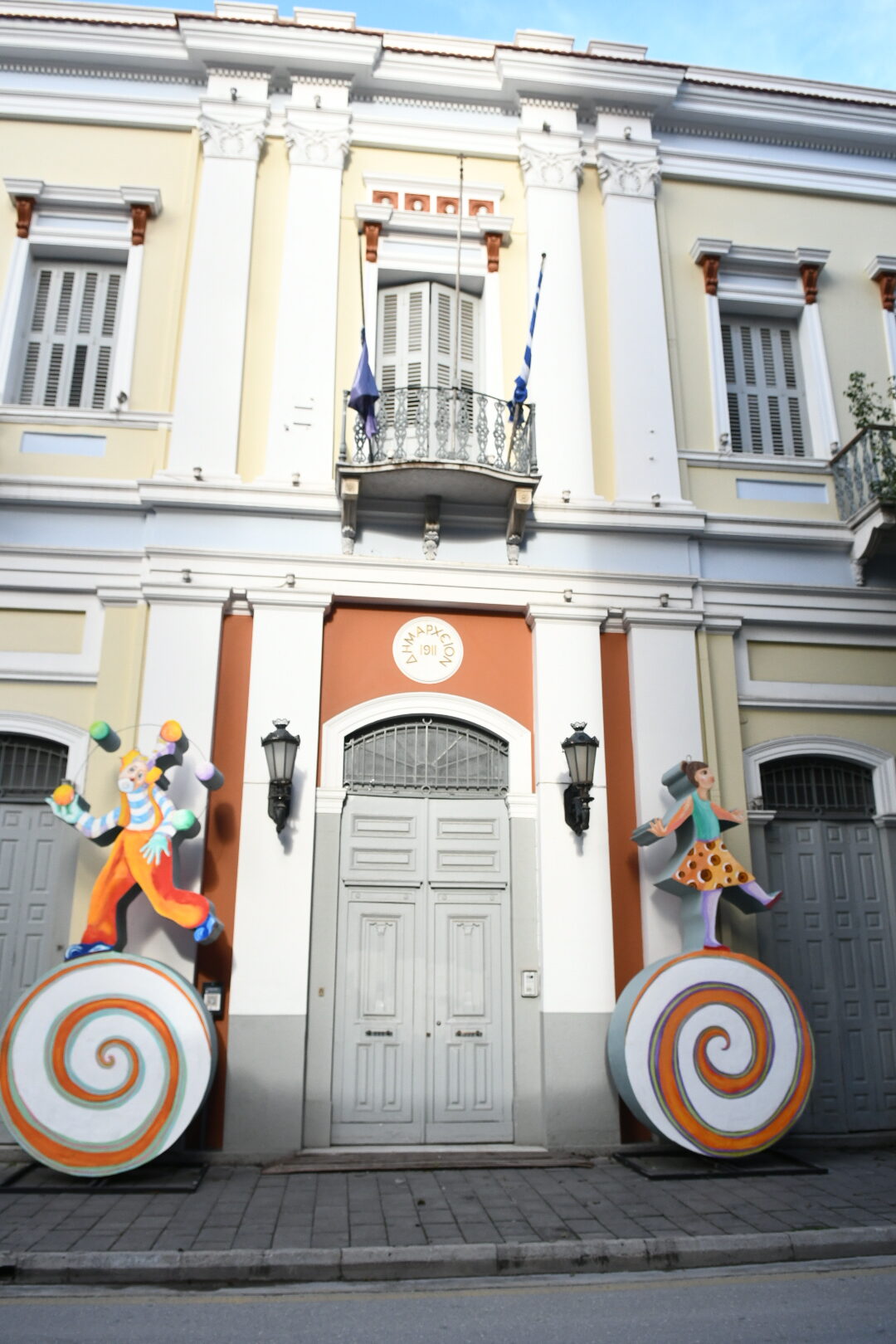 Ανάλογη είναι η εικόνα στο Δημαρχείο Πατρών (πρώην Αρσάκειο) που έχει λάβει γιορτινή, καρναβαλική όψη και αύριο (Παρασκευή 17/1/2025) θα υποδεχτεί το καρναβαλικό λάβαρο, αλλά και στην πρόσοψη του παλαιού Δημαρχείου στην οδό Μαιζώνος όπου στην πύλη του έχουν τοποθετηθεί δύο μπάστακες σε σχέδια της Άννας Καρατζά.