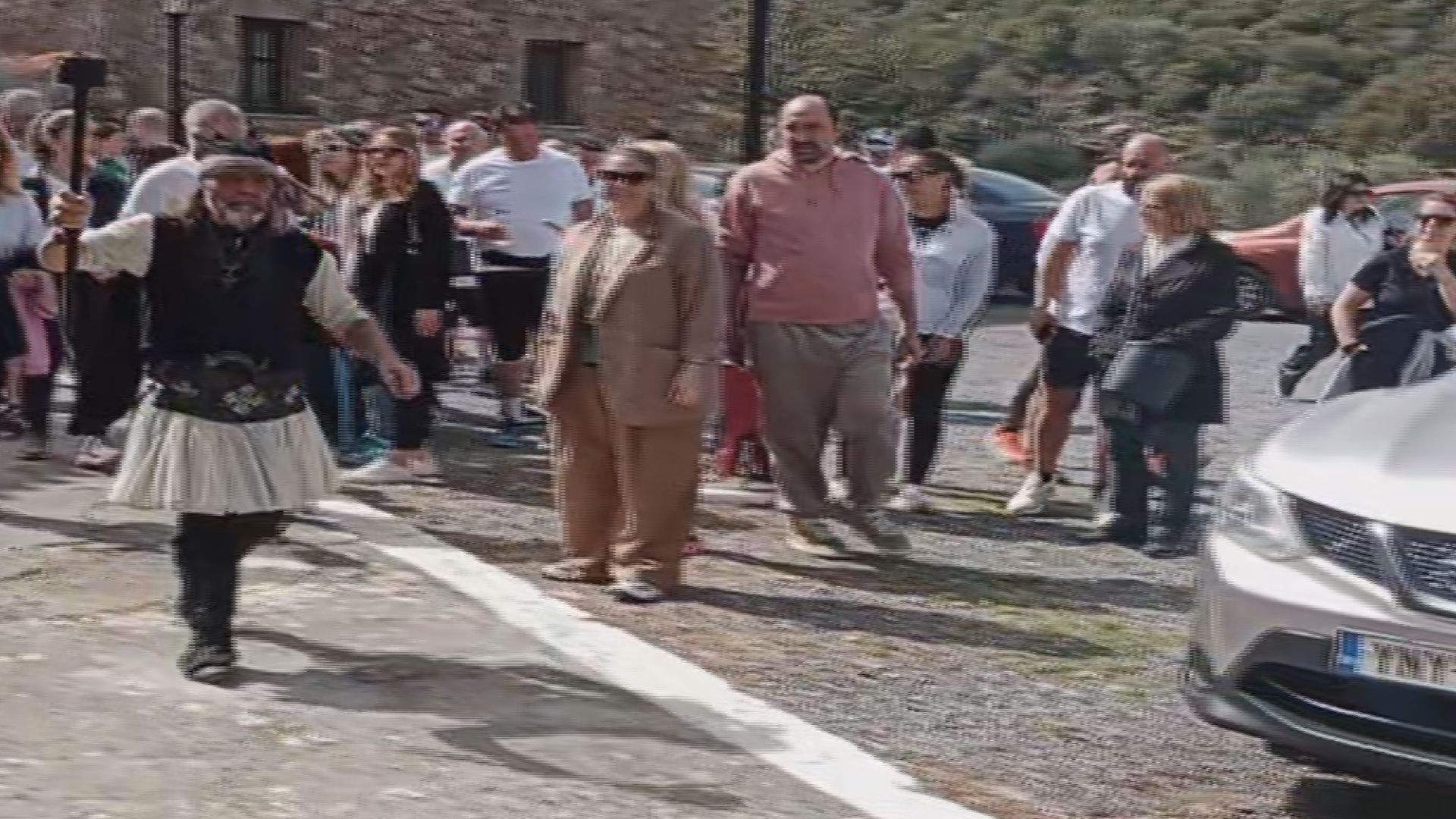 Με το λάβαρο στο χέρι πρώτος ο επικεφαλής του Συλλόγου “Ελληνομνήμονες” Σπύρος Κατσίρας.