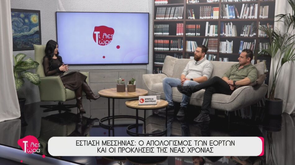 Στην εκπομπή «Τι λες τώρα» με την Αναστασία Μάντζαρη βρέθηκαν καλεσμένοι ο Πρόεδρος του Συλλόγου Εστίασης Μεσσηνίας, Γιάννης Κολοβός, και το μέλος του Συλλόγου, Κωνσταντίνος Τσέλιος. Στο επίκεντρο της συζήτησης βρέθηκε η αποτίμηση της εορταστικής κίνησης στην περιοχή, με τους προσκεκλημένους να αναλύουν τα δεδομένα των ημερών και το κατά πόσο η επισκεψιμότητα μεταφράστηκε σε κατανάλωση. Παράλληλα, έγινε εκτενής αναφορά για τους στόχους της νέας χρονιάς.