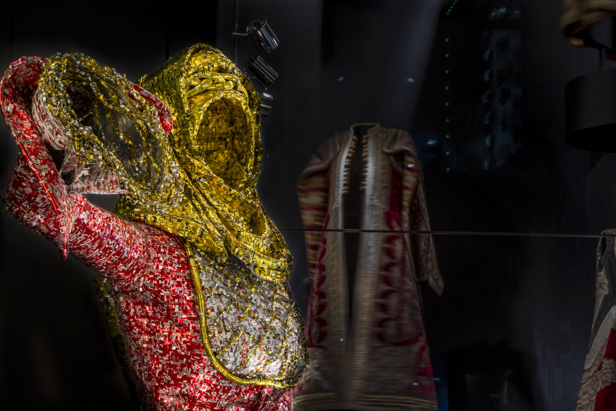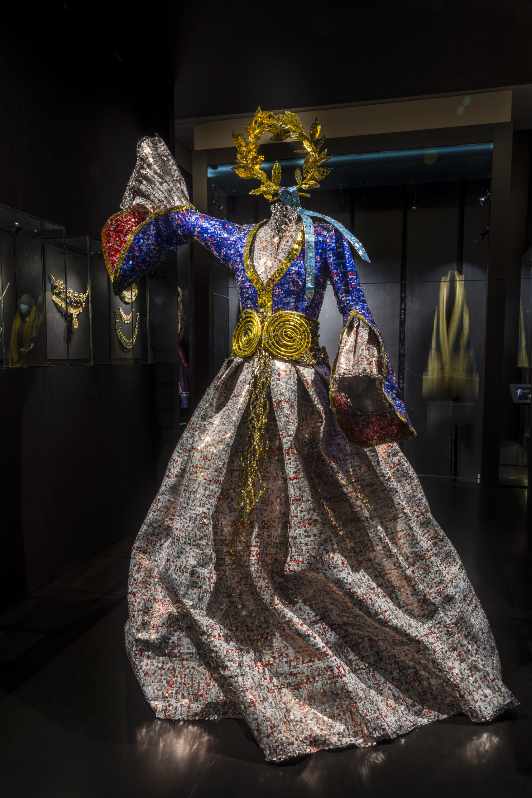 Η συστέγαση – συνομιλία των έργων του Νίκου Φλώρου, με τις παραδοσιακές ενδυμασίες της μόνιμης συλλογής, είναι κάθε άλλο παρά τυχαία. Πρόκειται για δύο συλλογές καταπληκτικές που συναγωνίζονται σε φαντασμαγορικότητα, μοναδικότητα και ποιότητα ενώ συνάμα συνυπάρχουν αρμονικά και αλληλοσυμπληρώνονται. Η συλλογή ελληνικών ενδυμασιών, αποτελεί έργο ζωής για τη Βικτώρια Καρέλια και ο υπερσύγχρονος χώρος στέγασής της συνιστά τον ιδανικό καμβά για να αναδειχθούν όλα τα έργα. Οι δύο συλλογές έχουν κοινό άξονα την ιστορία και την παράδοση δημιουργώντας μία σύμπνοια πατροπαράδοτου και σύγχρονου, παρελθόντος και παρόντος, υφάσματος και μετάλλου!