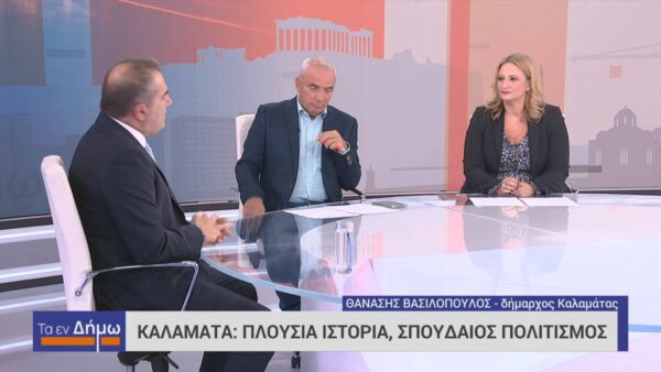 Στην εκπομπή «Τα εν Δήμω» της ΕΡΤ με τους δημοσιογράφους Τάκη Σαράντη και Μαρία Μαγκλάρα, ο Δήμαρχος Καλαμάτας μίλησε εφ’ όλης της ύλης για την πορεία του Δήμου.