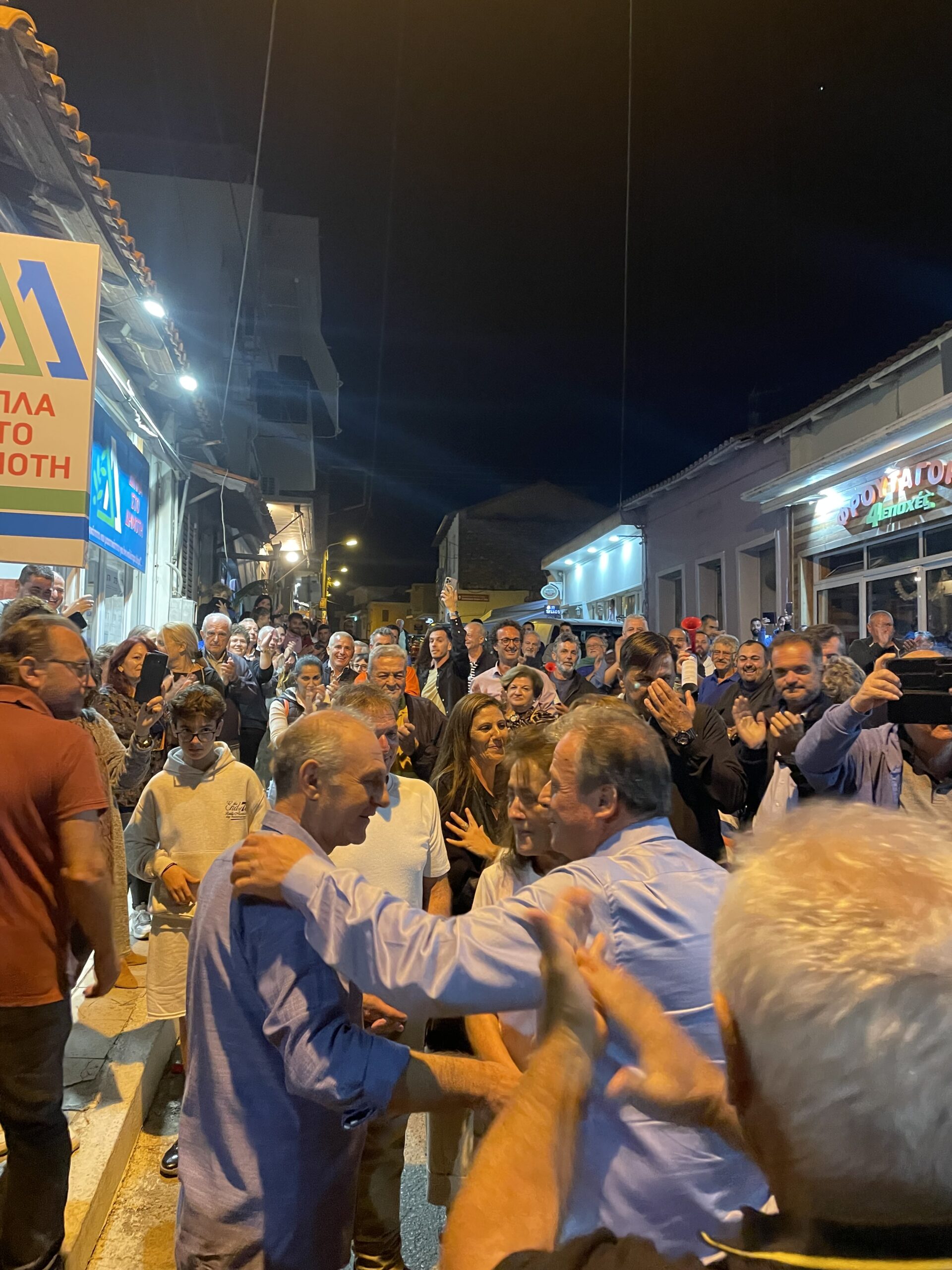 Ο πρώην Πρωθυπουργός βρέθηκε στο εκλογικό κέντρο του συνδυασμού στην Καλαμάτα και στο πλευρό Δημήτρη Πτωχού .