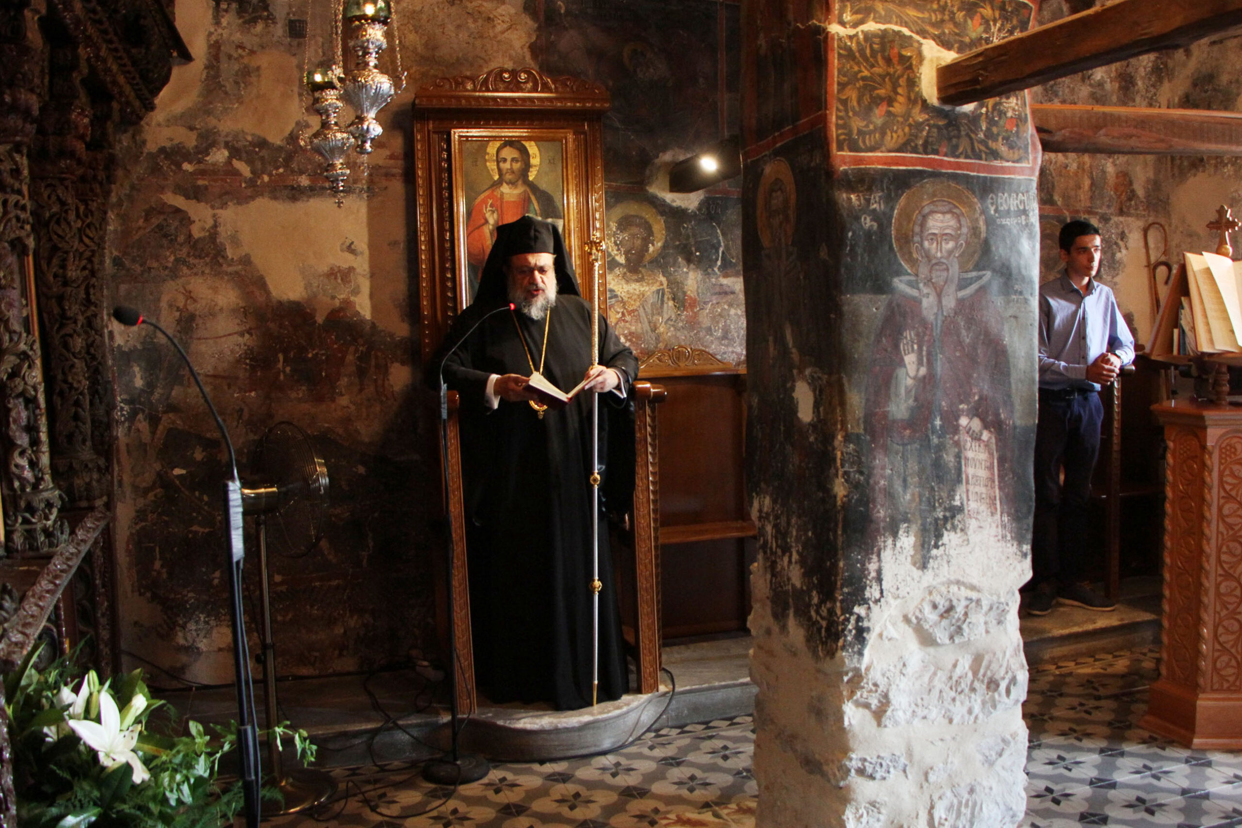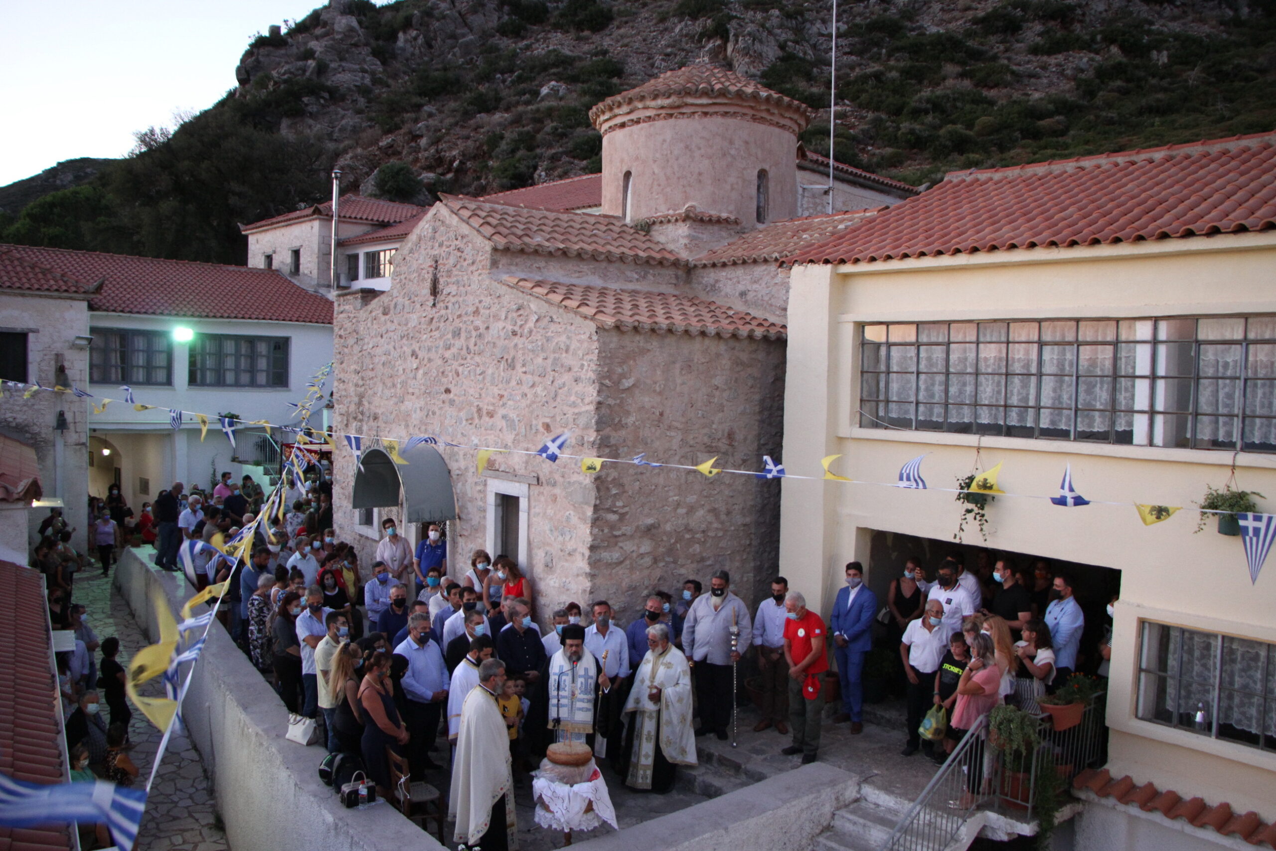 Ο Σεβ. Μητροπολίτης Μεσσηνίας κ. Χρυσόστομος χοροστάτησε στην Ακολουθία του Εσπερινού στην πανηγυρίζουσα Ιερά Μονή Κοιμήσεως της Θεοτόκου Δημιόβης, συμπαραστατούμενος από Ιερείς.