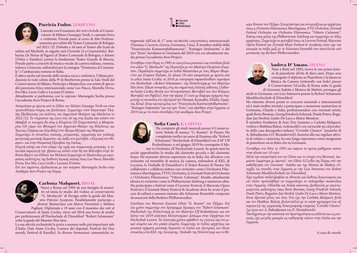 Το Italian Lyric Ensemble αποτελείται από τους: