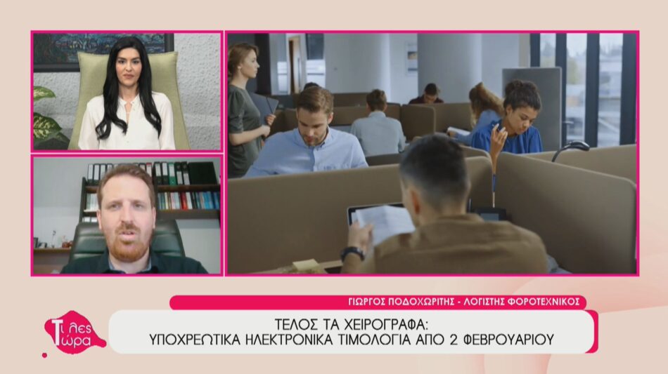 Στην εκπομπή «Τι λες τώρα» με την Αναστασία Μάντζαρη βρέθηκε καλεσμένος ο λογιστής-φοροτεχνικός Γιώργος Ποδοχωρίτης, δίνοντας χρήσιμες διευκρινίσεις για τις τρέχουσες φορολογικές εξελίξεις. Ο κ. Ποδοχωρίτης ανέλυσε την υποχρεωτικότητα των ηλεκτρονικών τιμολογίων που ξεκινά στις 2 Φεβρουαρίου, τις αλλαγές στα όρια συναλλαγών του συστήματος IRIS, καθώς και τις κρίσιμες προθεσμίες για τις μεταβολές στο Ε9 έως το τέλος Ιανουαρίου. Μέσα από μια επίκαιρη συζήτηση, παρουσιάστηκαν όλα όσα πρέπει να γνωρίζουν οι επαγγελματίες και οι ιδιοκτήτες ακινήτων για να αποφύγουν λάθη και πρόστιμα.