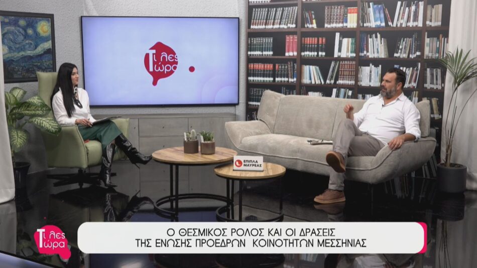 Στην εκπομπή ”Τι λες τώρα” με την Αναστασία Μάντζαρη φιλοξενήθηκε ο Πρόεδρος της Ένωσης Κοινοτήτων Μεσσηνίας, Γρηγόρης Κωστόπουλος, ο οποίος ανέπτυξε το όραμα και τις δράσεις της Ένωσης για την ενίσχυση των τοπικών κοινοτήτων. Κατά τη διάρκεια της συζήτησης, ο κ. Κωστόπουλος ανέλυσε τις αλλαγές που φέρνει ο νέος Κώδικας Δήμων και Περιφερειών. Ιδιαίτερη αναφορά έγινε στις πρόσφατες έντονες βροχοπτώσεις και την άμεση παρέμβαση στο φράγμα του Παμίσου, όπου η κινητοποίηση του Δήμου και της Κοινότητας λειτούργησε καταλυτικά ώστε να αποτραπούν τα χειρότερα από τις φυσικές καταστροφές. Τέλος, ο Πρόεδρος αναφέρθηκε στη διαρκή μάχη που δίνεται για τη στελέχωση του Κέντρου Υγείας Αγίου Νικολάου, αλλά και στον αγώνα για τη διατήρηση των υποκαταστημάτων ΕΛΤΑ στην ύπαιθρο, προκειμένου να διασφαλιστεί η ποιότητα ζωής των κατοίκων.