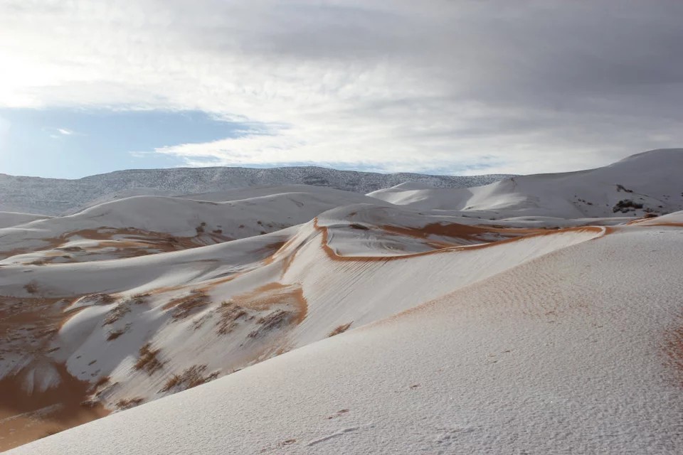 Χιόνι στη… Σαχάρα, για ακόμη μια φορά τα τελευταία χρόνια, γεγονός που αποδεικνύει το πόσο έχουν μεταβληθεί τα καιρικά φαινόμενα.