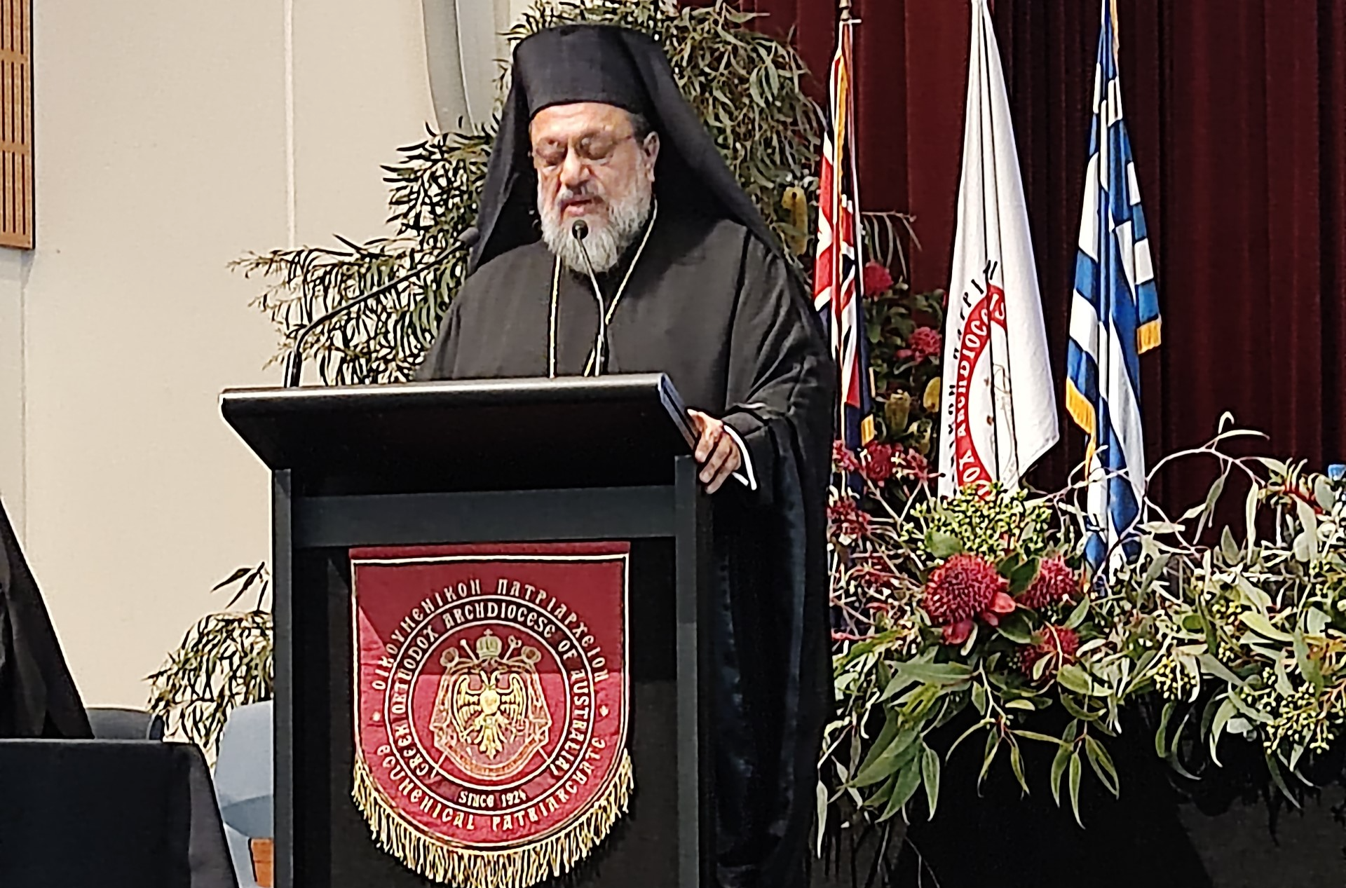 Κατά την έναρξη της Κληρικολαϊκής Συνέλευσης, το πρωί της Δευτέρας 25 Σεπτεμβρίου, αμέσως μετά την Εισηγητική Ομιλία του Αρχιεπισκόπου Αυστραλίας κ. Μακαρίου, έλαβε τον λόγο ο Σεβ. Μητροπολίτης Μεσσηνίας Χρυσόστομος, ο οποίος ανέπτυξε την Εισήγησή του με θέμα : “Ιερωσύνη: Χάρισμα εν τη Εκκλησία και διακονία εν τω κόσμω”.