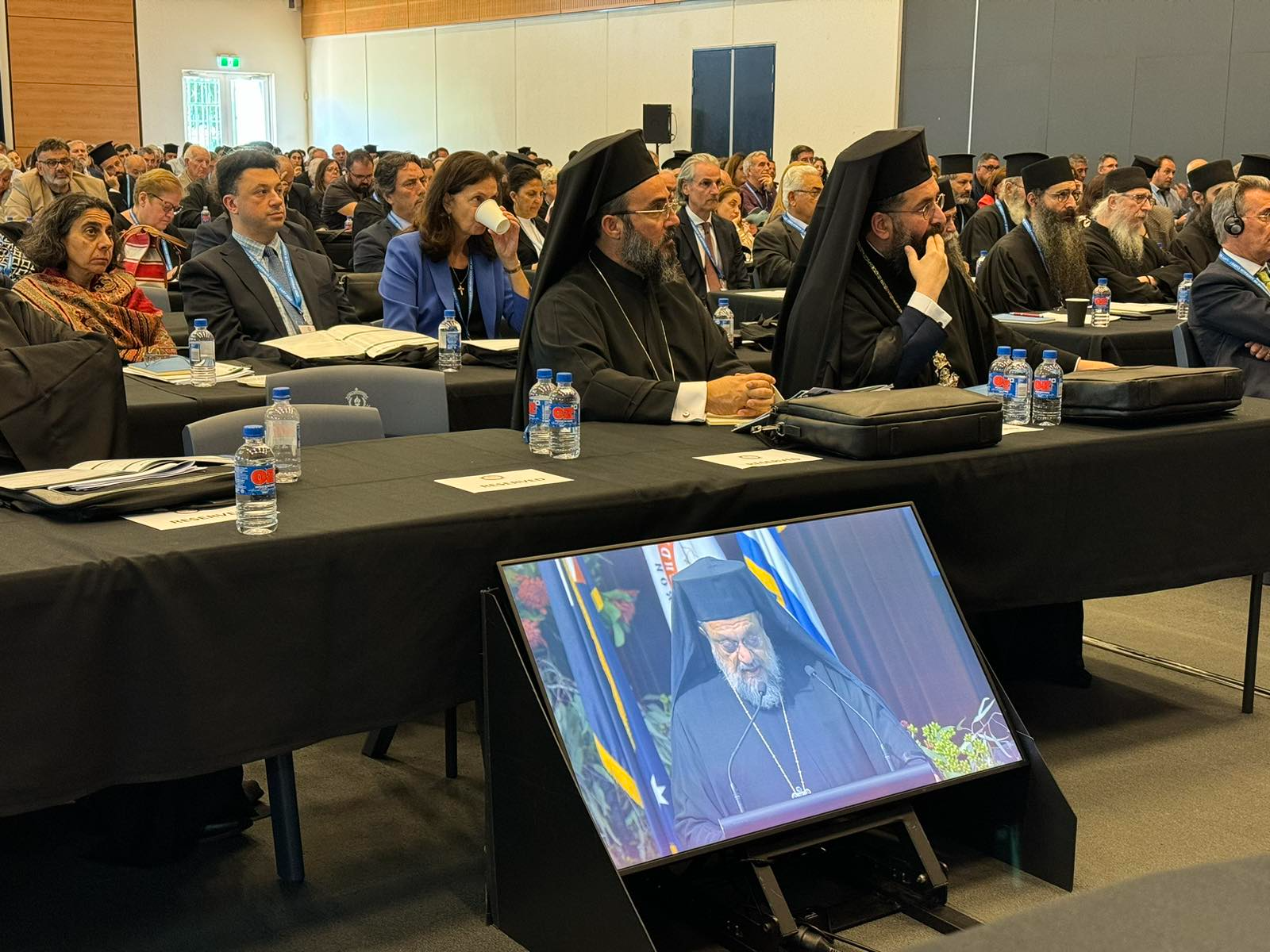 Στην Κληρικολαϊκή Συνέλευση συμμετέχουν επίσης ο Σεβ. Αρχιεπίσκοπος Θυατείρων και Μεγάλης Βρετανίας κ. Νικήτας, ως εκπρόσωπος του Οικουμενικού Πατριάρχου κ. Βαρθολομαίου, ο Σεβ. Μητροπολίτης Ιλίου, Αχαρνών και Πετρουπόλεως κ. Αθηναγόρας, ο Σεβ. Μητροπολίτης Πέτρας και Χερρονήσου κ. Γεράσιμος, ο Σεβ. Μητροπολίτης Ρεθύμνης και Αυλοποτάμου κ. Πρόδρομος, ο Πρωτοσύγκελλος της Ιεράς Μητροπόλεως Μεσσηνίας Αρχιμ. Φίλιππος Χαμαργιάς και ο Πρωτοσύγκελλος της Ιεράς Μητροπόλεως Ιλίου Αρχιμ. Νικόδημος Αθανασίου.