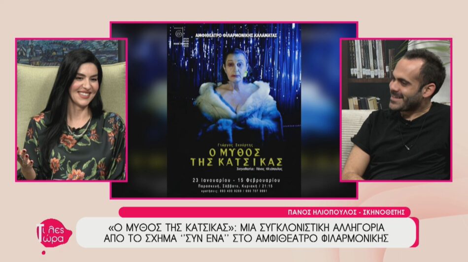 Ο σκηνοθέτης και αριστούχος απόφοιτος του Τμήματος Σκηνοθεσίας του Εθνικού Θεάτρου, Πάνος Ηλιόπουλος βρέθηκε στην εκπομπή «Τι λες τώρα» με την Αναστασία Μάντζαρη, μιλώντας για τη νέα του παράσταση «Ο μύθος της κατσίκας». Μετά τη σαρωτική επιτυχία με τα 11 βραβεία στο 5ο Πανελλήνιο Φεστιβάλ Ερασιτεχνικού Θεάτρου Θερμαϊκού για την παράσταση «Μεγαλώνοντας τον Εντί», επιστρέφει με το σχήμα «Συν Ένα – Μιχάλης Τούμπουρος» με μια σκληρή αλληγορία που αναδεικνύει το πρόσωπο της εξουσίας και της εκμετάλλευσης, μέσα από την ατμόσφαιρα ενός παρακμιακού καμπαρέ. Το έργο κάνει πρεμιέρα την Παρασκευή 23 Ιανουαρίου και θα παρουσιάζεται έως τις 15 Φεβρουαρίου στο Αμφιθέατρο Φιλαρμονικής Καλαμάτας.
