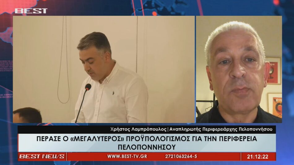 Με προϋπολογισμό 150 εκατ. ευρώ και δυνατότητα υπερδέσμευσης έως 195 εκατ., το νέο Περιφερειακό Πρόγραμμα Ανάπτυξης της Πελοποννήσου ανοίγει έναν νέο αναπτυξιακό κύκλο. «Δείχνει την επιτυχία μιας μεγάλης προσπάθειας» τόνισε μιλώντας στο Κεντρικό Δελτίο Ειδήσεων της τηλεόρασης BEST ο Αναπληρωτής Περιφερειάρχης Πελοποννήσου Χρήστος Λαμπρόπουλος ενώ ανέφερε «Το μεγαλύτερο πρόγραμμα που πήραμε ποτέ. Απολύτως καθαρό μας δίνεται η δυνατότητα να το απορροφήσουμε την επόμενη διετία. Το 2021 πήραμε από την προηγούμενη περιφερειακή αρχή ένα πρόγραμμα 126 εκατομμύρια, 20% λιγότερο από το τωρινό, δεσμευμένο κατά τα 80 εκατομμύρια από έργα που δεν είχε τελειώσει την προηγούμενη περίοδο. Τώρα το παίρνουμε καθαρό, είναι το μεγαλύτερο από ποτέ και είναι ένα απορεί κανείς γιατί δεν το ψήφισαν».