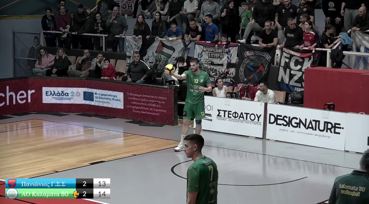 Ένα λάθος του Μπάση με άουτ σε σερβίς έστειλε τη μπάλα στα χέρια των Καλαματιανών που με πάθος, ικανότητα, θέληση και πείσμα έφθασαν σε match ball, set ball με τον εξαιρετικό διαγώνιο των λύκων, Άγγελο Μάρκου να βάζει την υπογραφή του στον πόντο που τελείωσε το παιχνίδι! (13-15).
