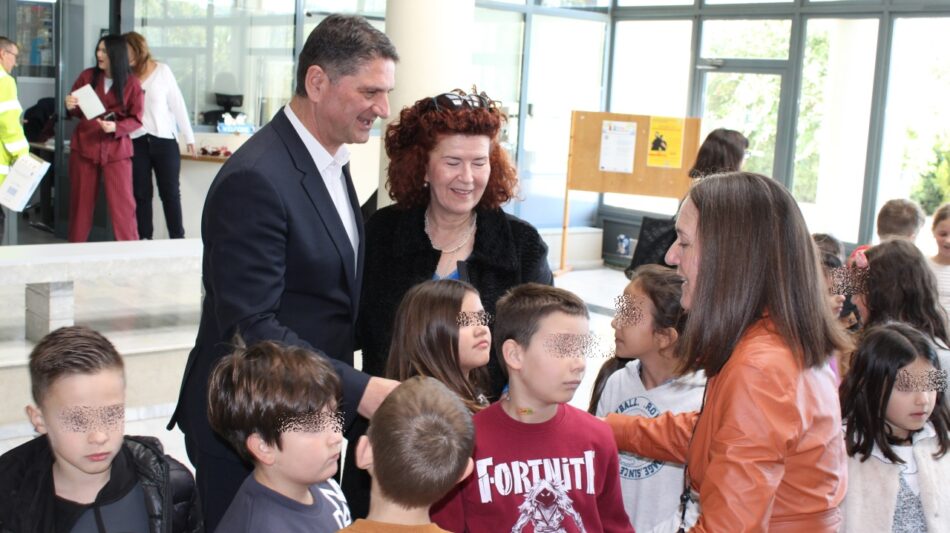 Ο Δήμαρχος υποδέχθηκε θερμά τα παιδιά και τους εκπαιδευτικούς τους, τους ευχαρίστησε για την όμορφη επίσκεψη και ευχήθηκε υγεία, χαρά και πρόοδο τη νέα χρονιά.