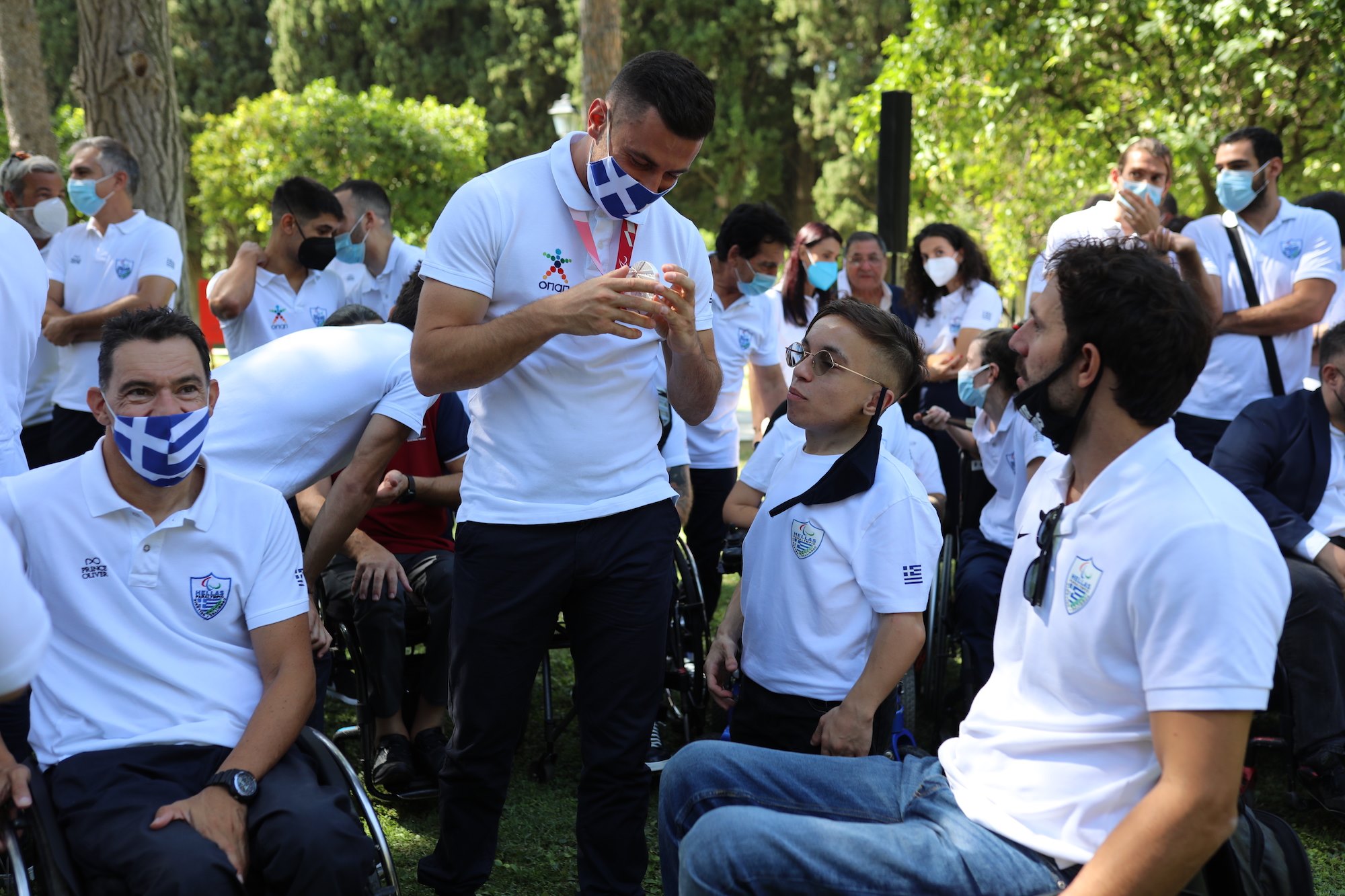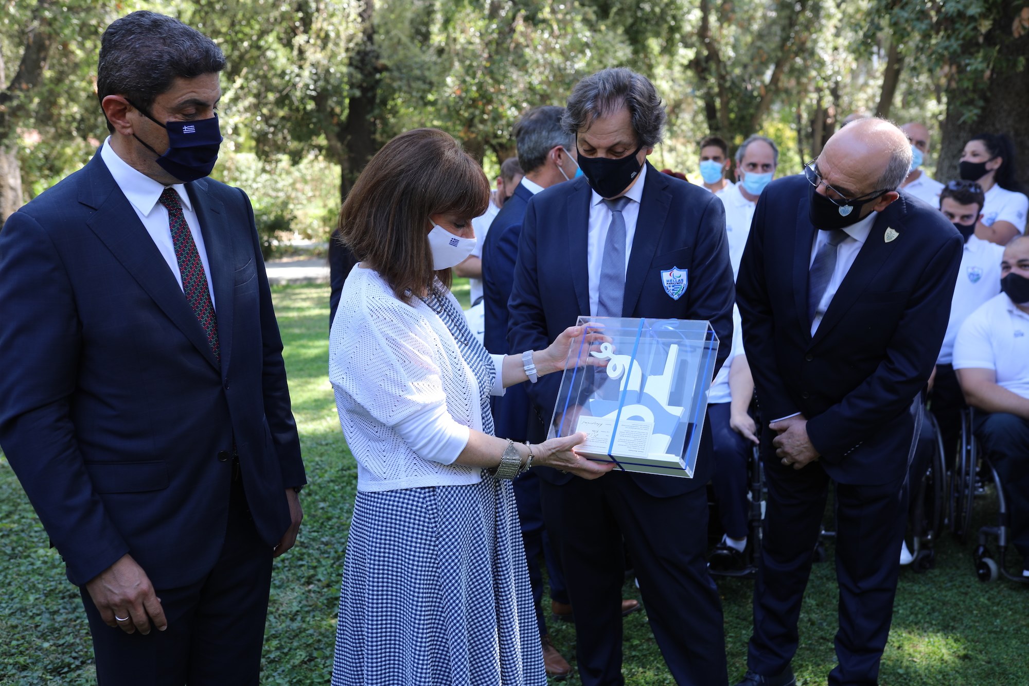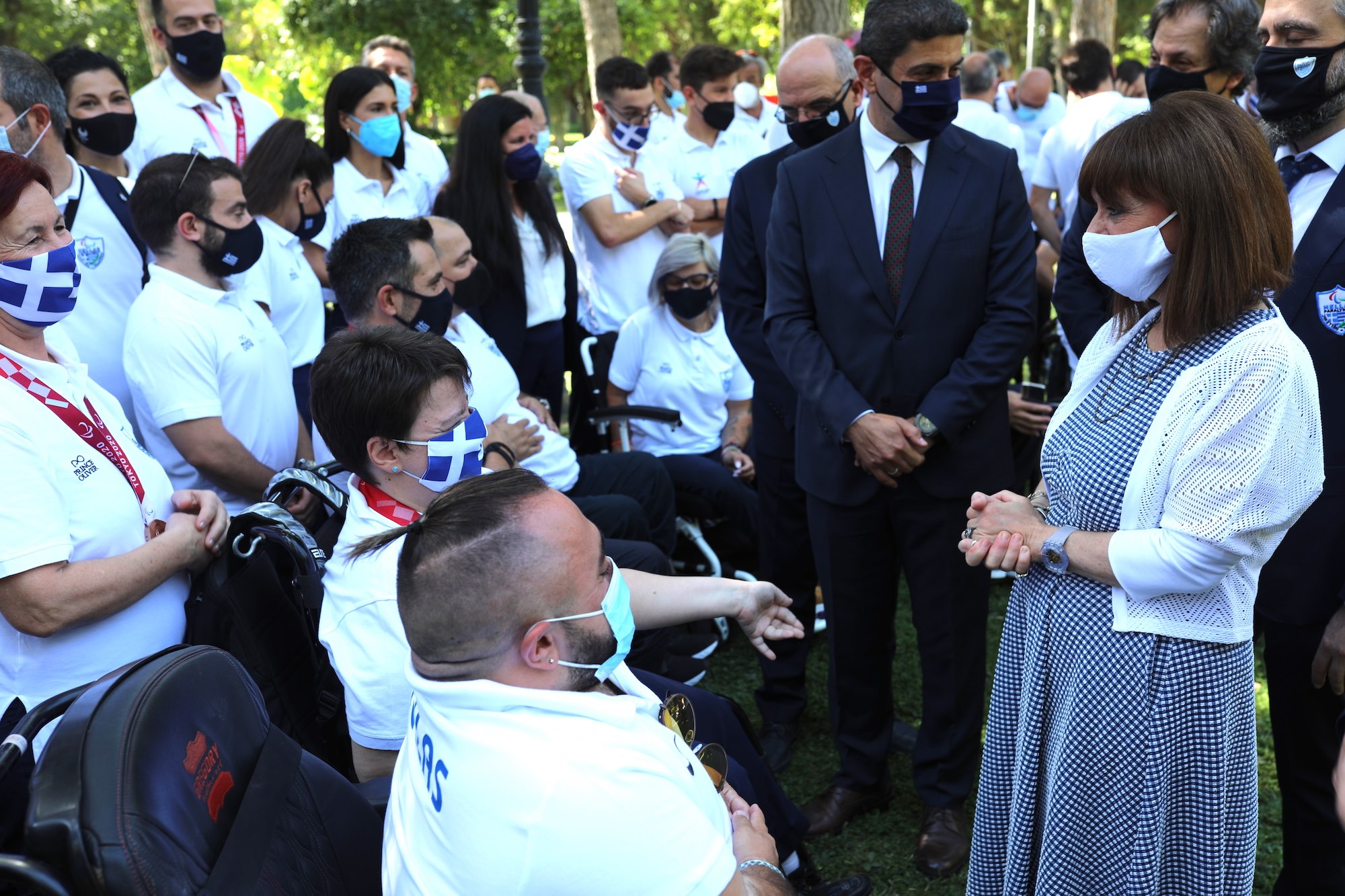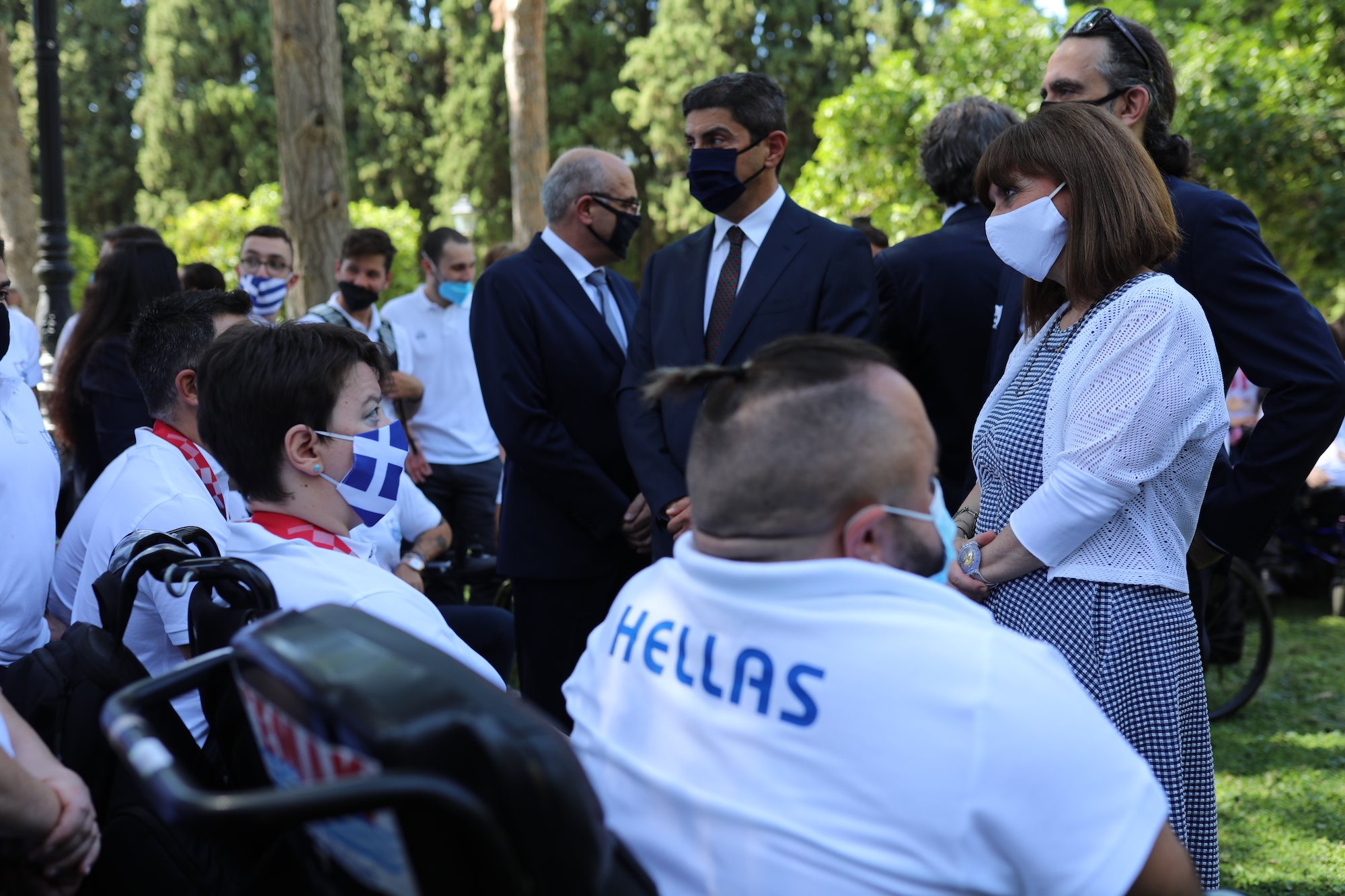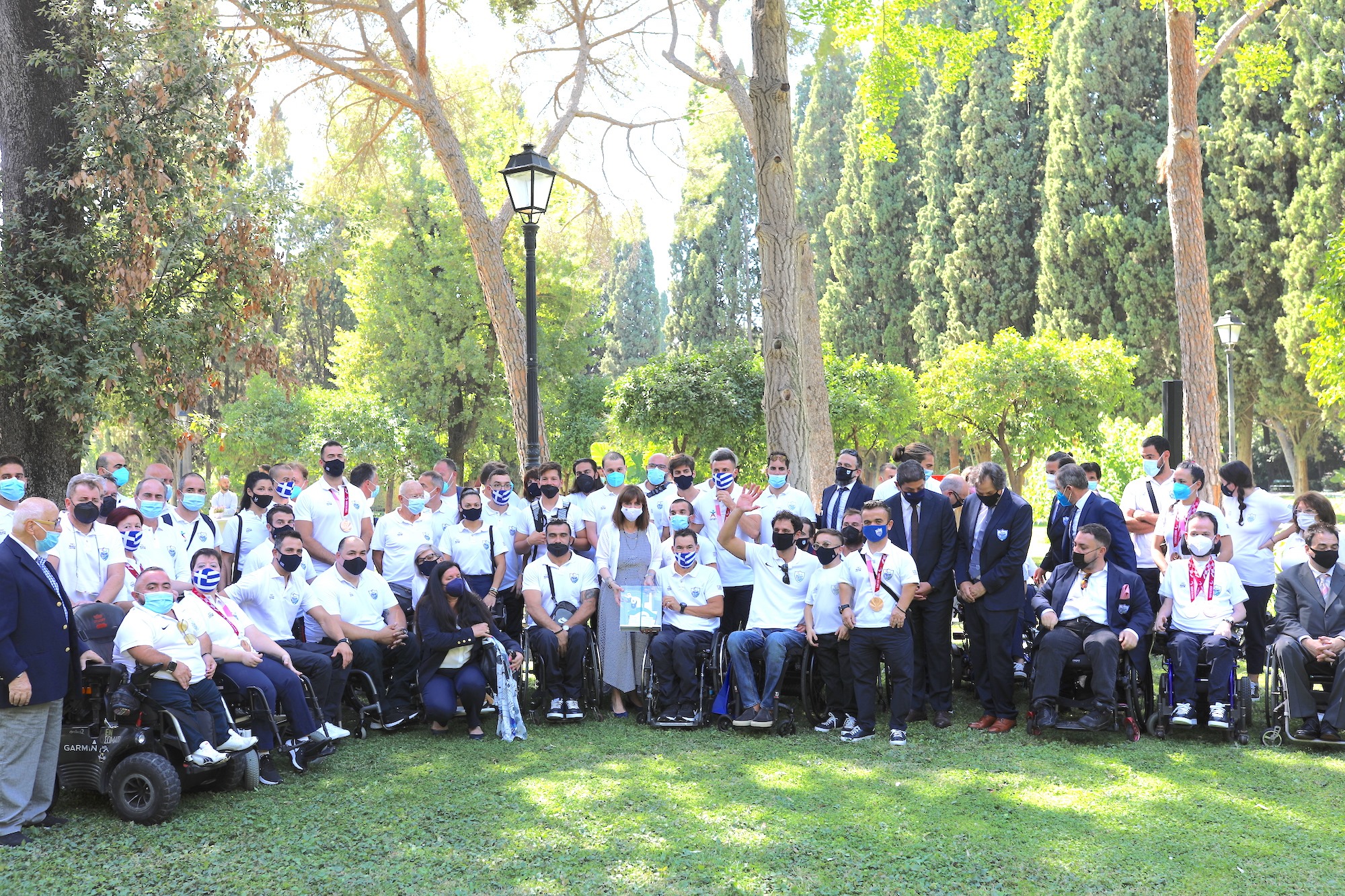 Στον κήπο του Προεδρικού Μεγάρου δέχθηκε η Πρόεδρος της Δημοκρατίας Κατερίνα Σακελλαροπούλου τους αθλητές, συνοδούς και προπονητές της ελληνικής αποστολής που συμμετείχε στους Παραολυμπιακούς Αγώνες του Τόκυο και κατέκτησε 11 μετάλλια.