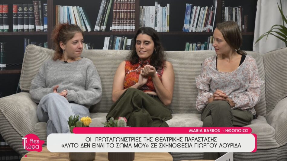 H Maria Barros, η Αντιγόνη Κωνσταντινίδη και Ursula Vratusa,οι τρεις απο τις τέσσερις πρωταγωνίστριες της θεατρικής παράστασης «Αυτό δεν είναι το σώμα μου» , ήταν καλεσμένες στην εκπομπή ΄΄Τι Λες Τώρα΄΄ με την Αναστασία Μάντζαρη, που προβάλλεται καθημερινά 17:00-19:00 απο την τηλεόραση BEST , μιλώντας για αυτή την ιδιαίτερη παράσταση που γεφυρώνει τους μύθους με τον σύγχρονο προβληματισμό.