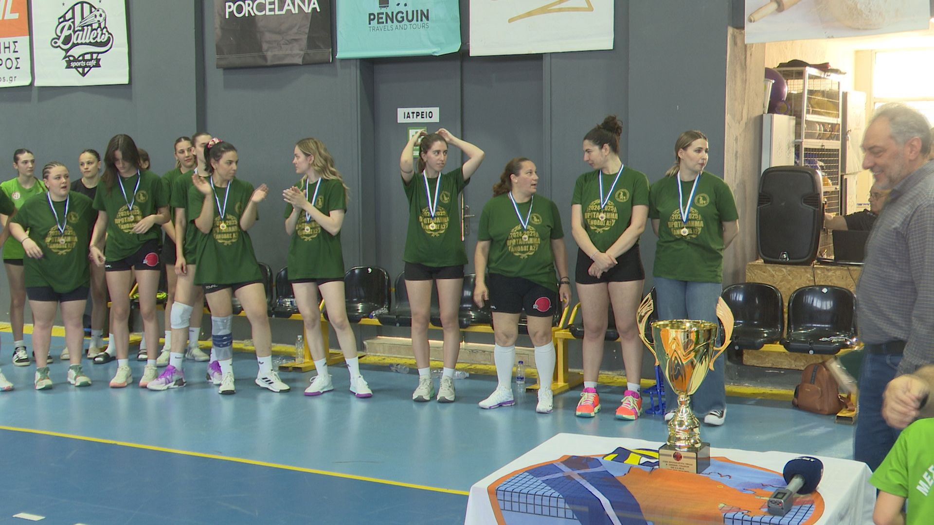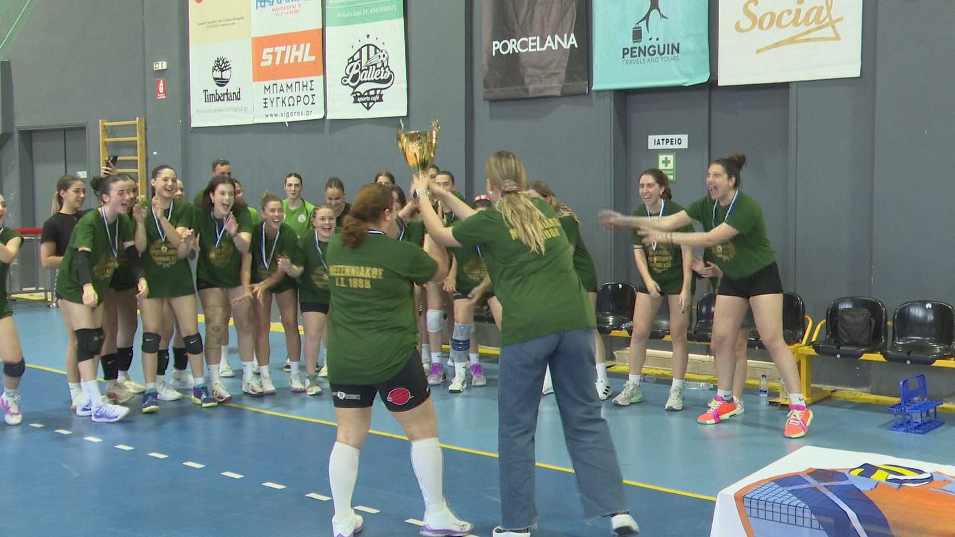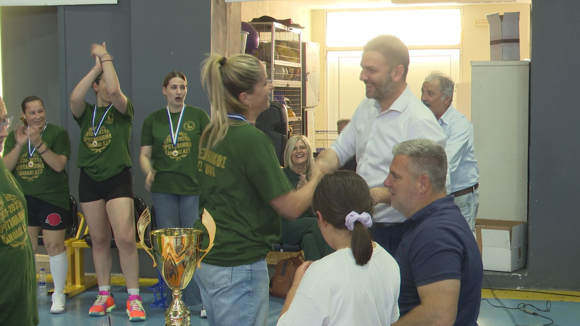 Ιδιαίτερη στιγμή το δώρο που είχαν ετοιμάσει οι αθλήτριες για τον Νίκο Ζεργιώτη. Ο Νικόλας που έχει συμπληρώσει μια δεκαετία ανιδιοτελούς προσφοράς στον σύλλογο των «πρασίνων» φροντίζοντας από το δικό του μετερίζι ώστε όλα να λειτουργούν εύρυθμα στην ομάδα, με συγκίνηση σήκωσε τη κούπα.