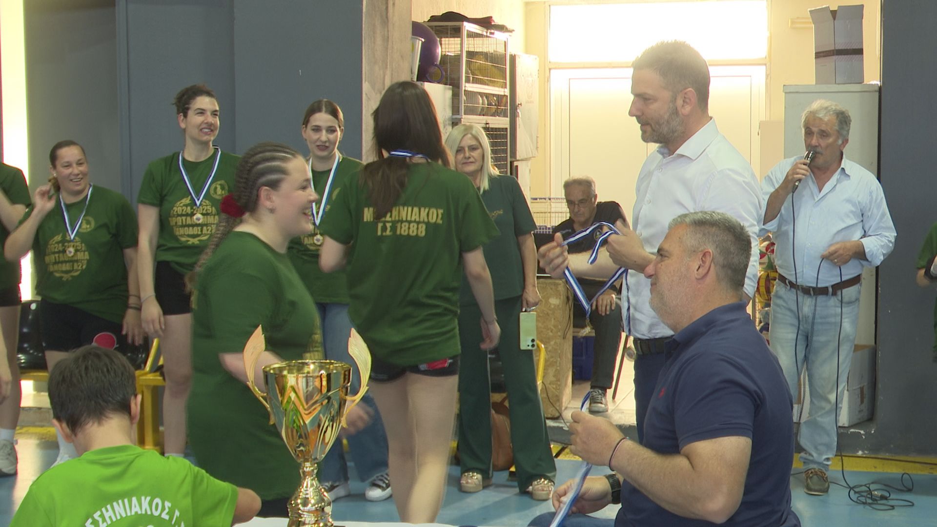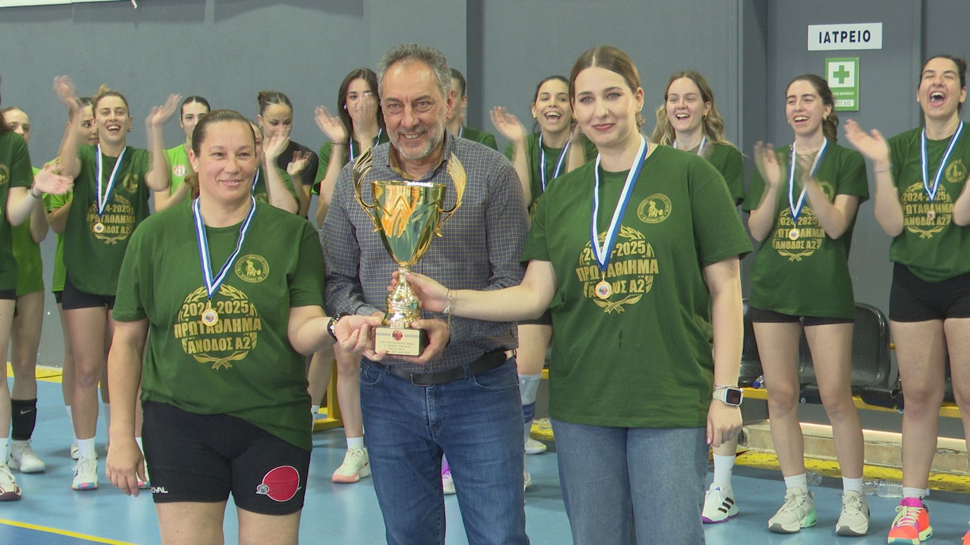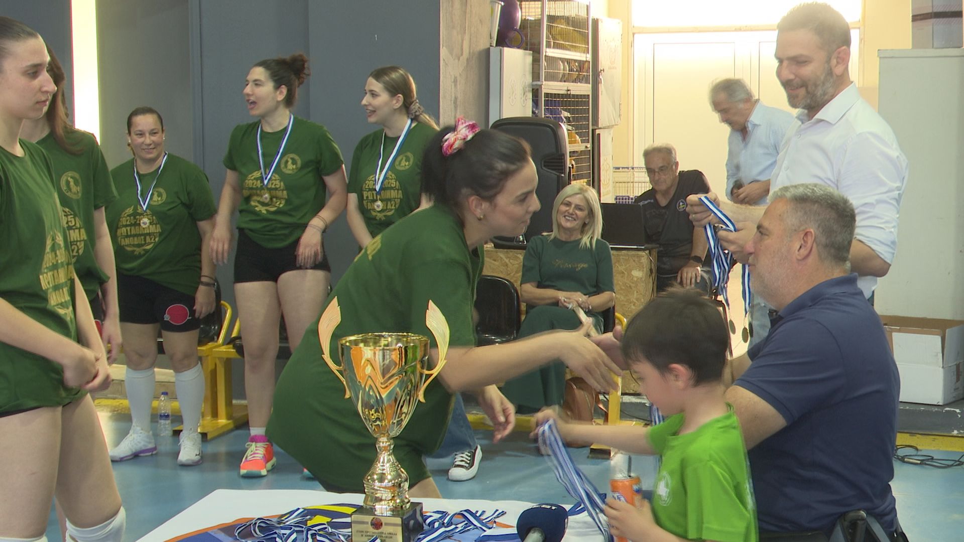 Ιδιαίτερη στιγμή το δώρο που είχαν ετοιμάσει οι αθλήτριες για τον Νίκο Ζεργιώτη. Ο Νικόλας που έχει συμπληρώσει μια δεκαετία ανιδιοτελούς προσφοράς στον σύλλογο των «πρασίνων» φροντίζοντας από το δικό του μετερίζι ώστε όλα να λειτουργούν εύρυθμα στην ομάδα, με συγκίνηση σήκωσε τη κούπα.