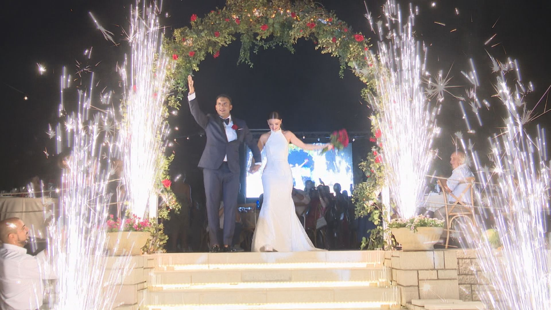 Στην δεξίωση που έγινε στον μοναδικό χώρο υπαίθριων εκδηλώσεων Akrotiri Venue, το νεόνυμφο ζευγάρι τίμησε με την παρουσία του πλήθος κόσμου με εκείνη του πρώην Πρωθυπουργού Αντώνη Σαμαρά, των βουλευτών Περικλή Μαντά και Μίλτου Χρυσομάλλη, του περιφερειάρχη Πελοποννήσου Δημήτρη Πτωχού και του δημάρχου Καλαμάτας Θανάση Βασιλόπουλου να ξεχωρίζουν μεταξύ πολλών άλλων εκπροσώπων του επιχειρείν, της αυτοδιοίκησης και του κοινωικού βίου του τόπου .