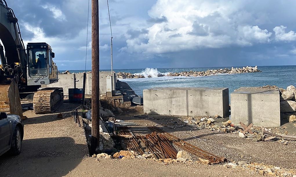- Οι εργασίες εντός του λιμένα έχουν διακοπεί λόγω των δυσμενών καιρικών συνθηκών. Σε κάθε περίπτωση όμως, στο χρονοδιάγραμμα υλοποίησης του έργου υπάρχει σχετική πρόβλεψη, με αποτέλεσμα να μην υφίσταται ανησυχία για χρονικές καθυστερήσεις και ο σχεδιασμός του έργου να ακολουθείται κανονικά.