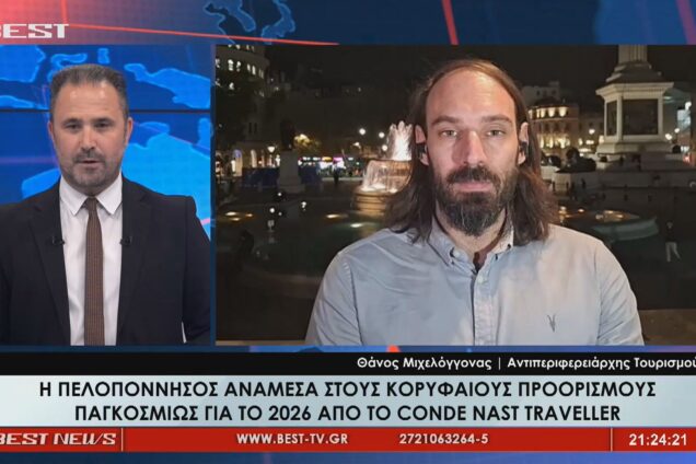 Η λίστα με τους κορυφαίους ταξιδιωτικούς προορισμούς για το 2026, που δημοσίευσε πριν από λίγες ώρες το περιοδικό Condé Nast Traveler, αναδεικνύει την ποικιλομορφία του σύγχρονου τουρισμού. Aνάμεσα σε αυτούς και η Πελοπόνnησος. Μιλώντας στο Κεντρικό Δελτίο Ειδήσεων της τηλεόρασης BEST