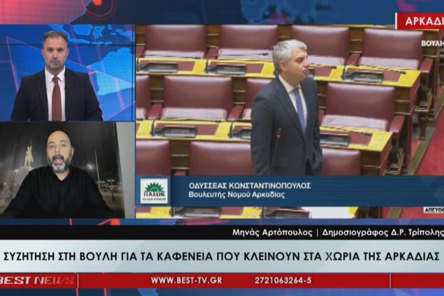 Όλα όσα συζητήθηκαν στη Βουλή για τα καφενεία που κλείνουν στα χωριά της Αρκαδίας βρέθηκαν ψηλά στην ατζέντα της ενημέρωσης στην στήλη «τα νέα της Αρκαδίας» στο κεντρικό δελτίο ειδήσεων του BEST, σε σχολιασμό του Μηνά Αρτόπουλου. Επίσης, οι Χριστουγεννιάτικες εκδηλώσεις