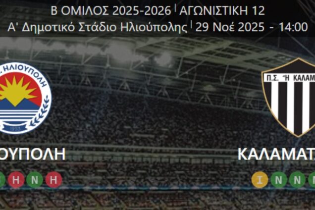Ηλιούπολη – Καλαμάτα LIVE στο BEST το Σάββατο 29/11