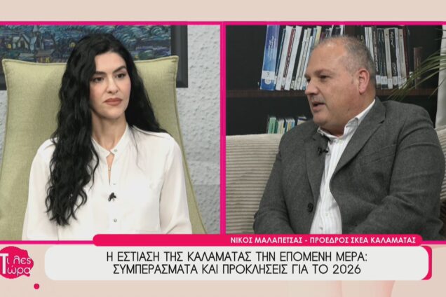 Καλεσμένος στην εκπομπή «Τι Λες Τώρα» με την Αναστασία Μάντζαρη, ο Πρόεδρος του Συλλόγου Καταστημάτων Εστίασης και Αναψυχής Καλαμάτας (ΣΚΕΑΚ), Νίκος Μαλαπέτσας, έδωσε το στίγμα της επόμενης μέρας για τον κλάδο. Με αφορμή την πρόσφατη θεσμική εκδήλωση στο Επιμελητήριο Μεσσηνίας,