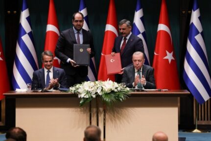 Δηλώσεις στον Τύπο έκαναν την ώρα οι Κυριάκος Μητσοτάκης και Ταγίπ Ερντογάν, μετά τη συνάντησή τους στο Λευκό Παλάτι στην Άγκυρα. Η συνάντηση Μητσοτάκη-Ερντογάν διήρκεσε περισσότερο από 1,5 ώρα. Υπεγράφησαν 7 συμφωνίες Παράλληλα με τη συνάντηση των δύο ηγετών έγινε το ΑΣΣ