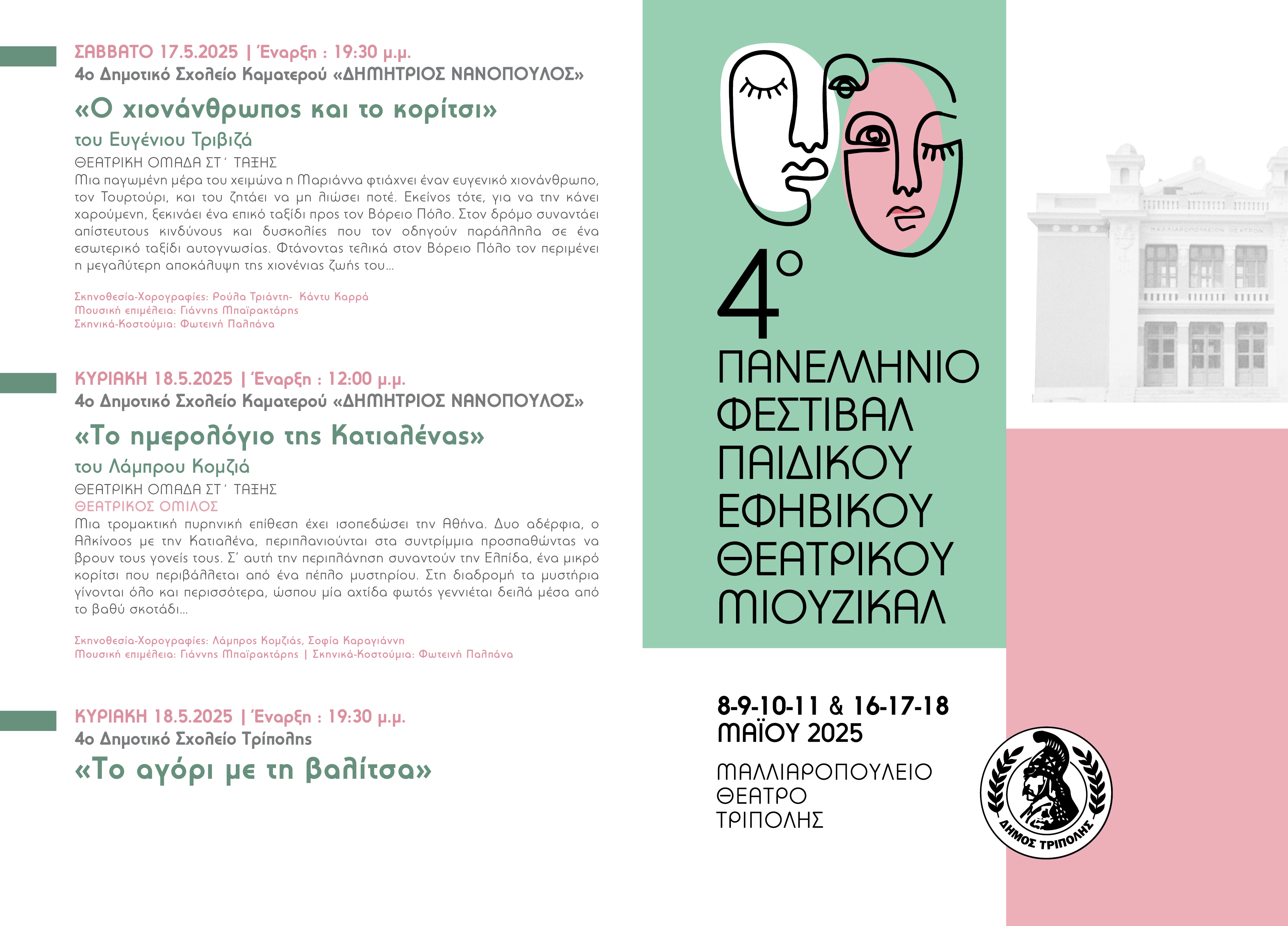 Στις 8,9,10,11 Μαΐου 2025 έχουμε την έναρξη του 4ΟΥ Πανελλήνιου Νεανικού Φεστιβάλ Μουσικής και Θεάτρου.