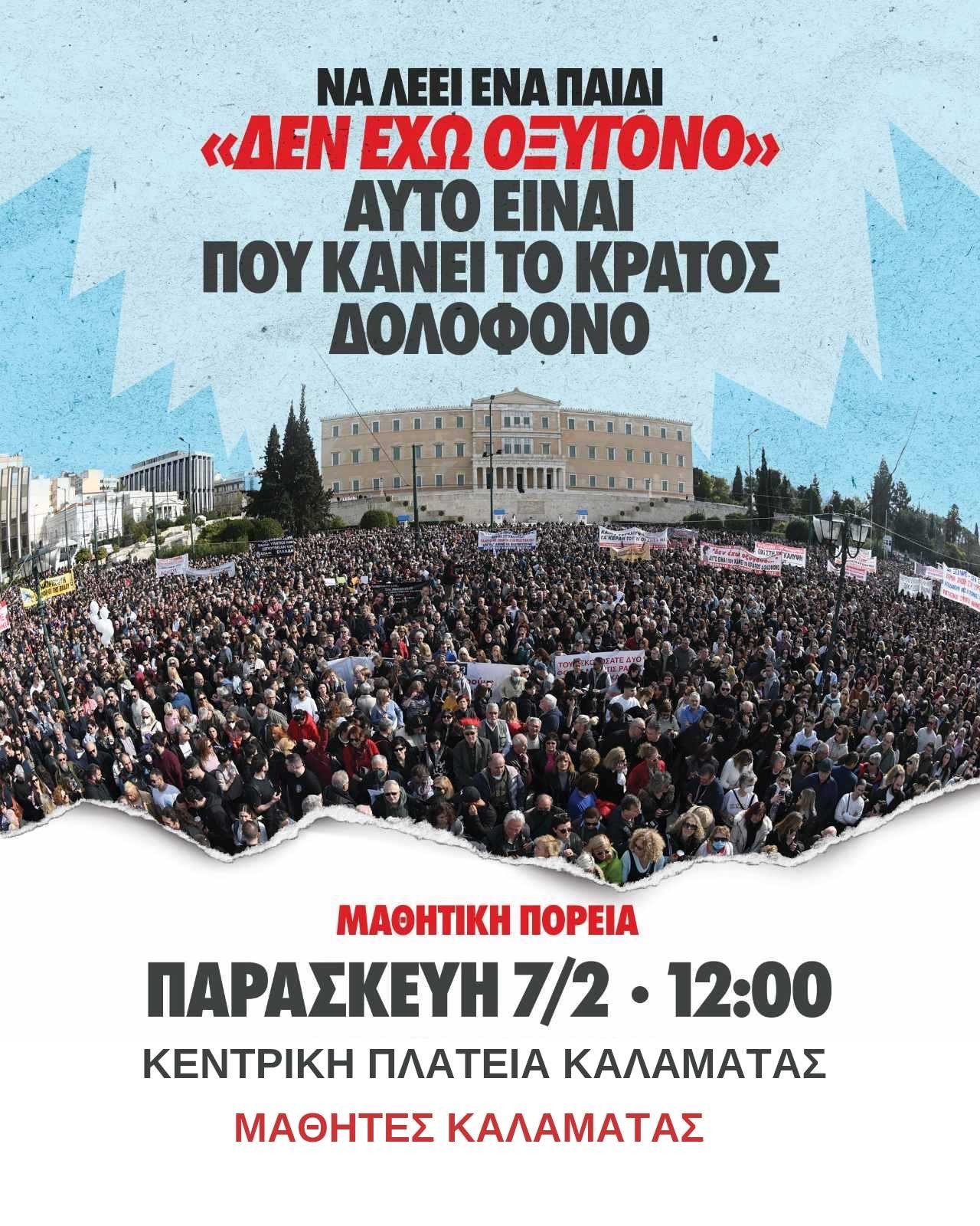 • Στο Φοιτητικό Μαθητικό συλλαλητήριο την Παρασκευή 7 Φλεβάρη στις 12:00 στην Κεντρική Πλατεία Καλαμάτας.