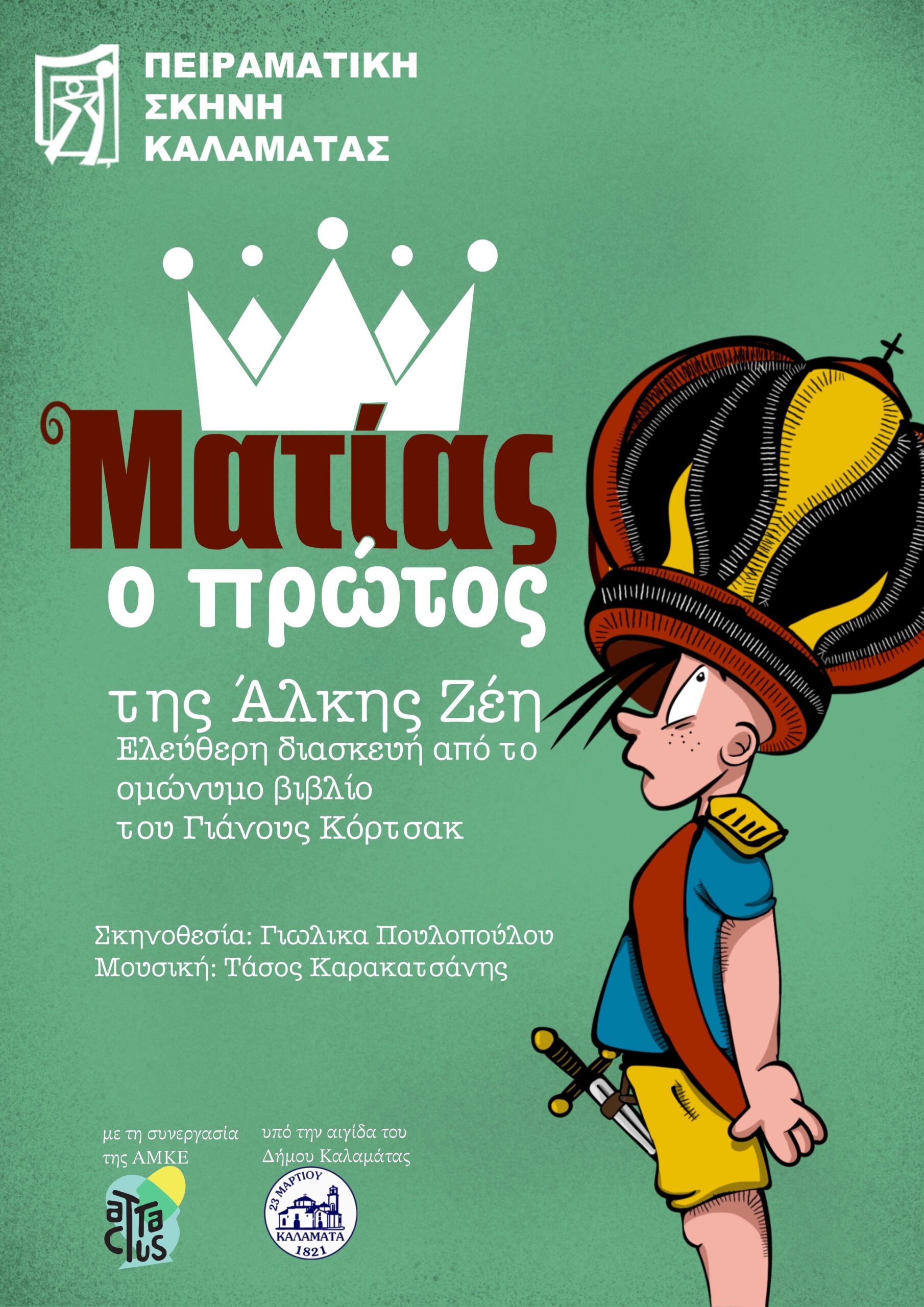 Η Πειραματική Σκηνή Καλαμάτας έχει έτοιμη να παρουσιάσει στις 4-7 Ιανουαρίου 2024 την παράσταση της εφηβικής ομάδας της, “Ματίας ο πρώτος, τα παιδιά στην εξουσία , οι μεγάλοι στα σχολεία” στο Αμφιθέατρο του Πνευματικού Κέντρου.