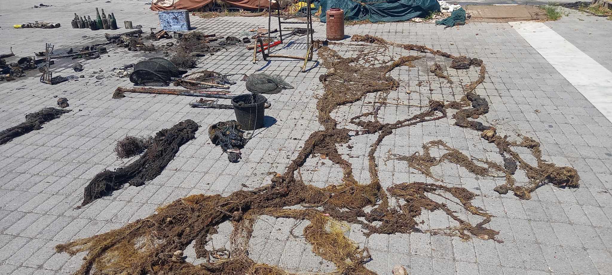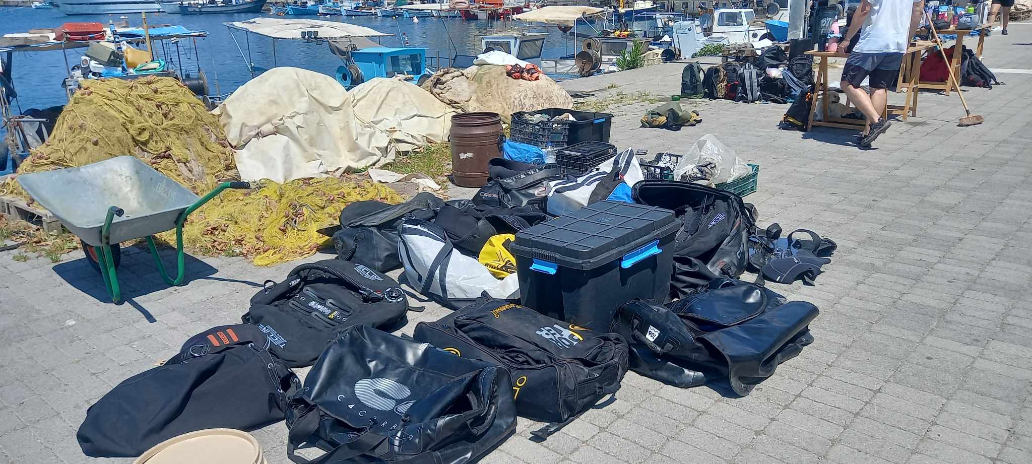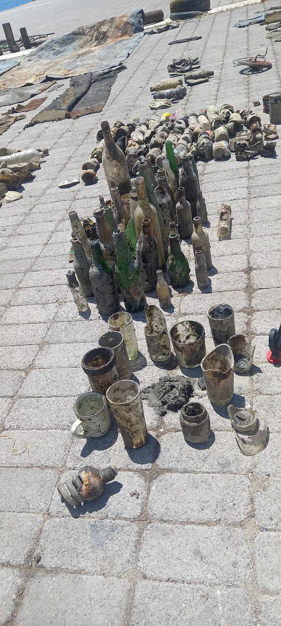 Μπουκάλια, καπάκια και πλαστικά όλων των ειδών, ρούχα, σύρματα ανέσυραν από τον πάτο του λιμανιού στην Καλαμάτα οι δύτες της Αegean Rebreath στο πλαίσιο μιας ακόμα δράσης στην Καλαμάτα, το διήμερο 8 και 9 Ιουλίου 2023.
