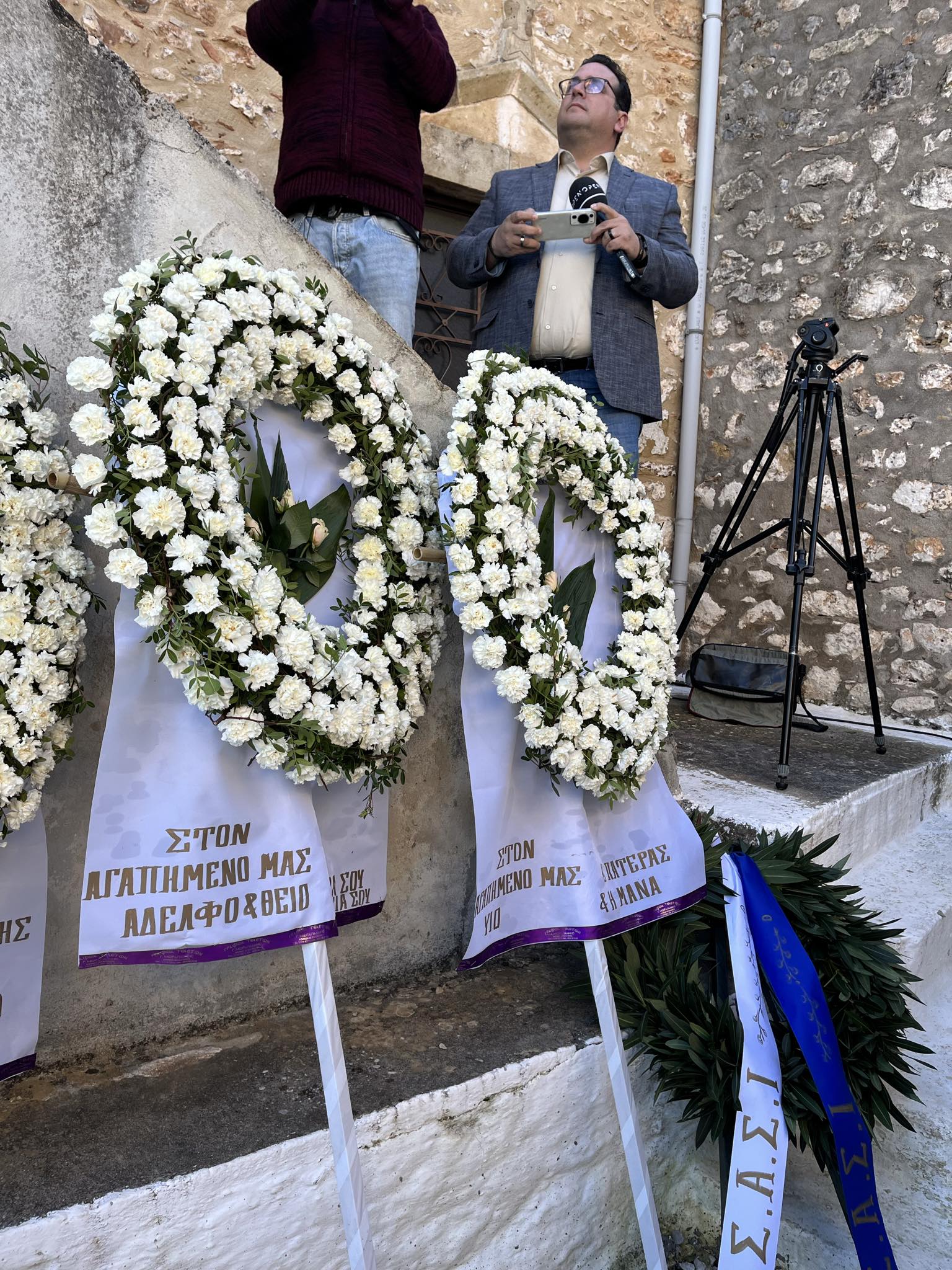 Το φέρετρο του 40χρονου σκεπασμένο με ελληνική σημαία. Οι στενοί συγγενείς του συντετριμμένοι. Τραγικές φιγούρες οι γονείς του αδικοχαμένου πιλότου και η σύζυγός του, που έμελλε να δει και να καταγράψει σε βίντεο τη συντριβή του εκπαιδευτικού αεροσκάφους.