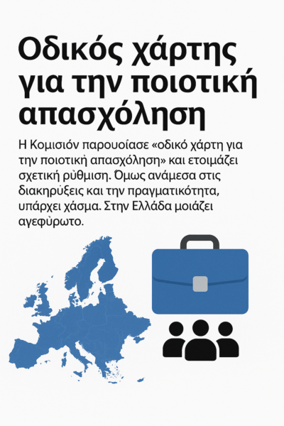 Η Ευρωπαϊκή Επιτροπή παρουσίασε τον «οδικό χάρτη για την ποιοτική απασχόληση» (Quality Jobs Roadmap), ξεκινώντας παράλληλα κύκλο διαβουλεύσεων για τον επερχόμενο κανονισμό Quality Jobs Act.