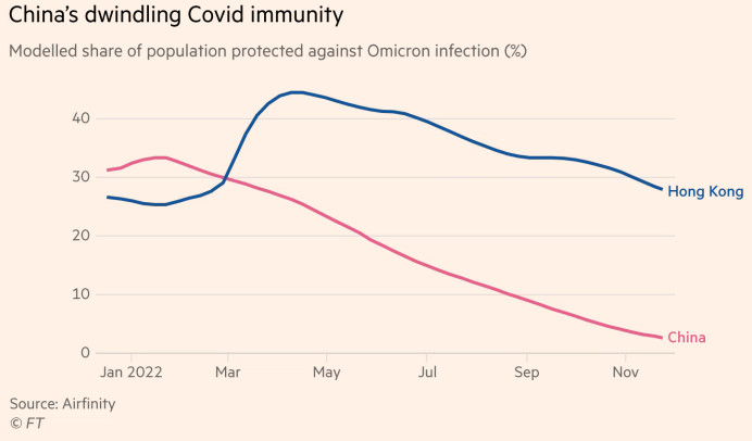 Τα στελέχη της Ομικρον, της κυρίαρχης παραλλαγής σε πολλές χώρες από τα τέλη του 2021, τα οποία πλέον σαρώνουν στην Κίνα ενδέχεται να μην είναι καλύτερα προσαρμοσμένα για μετάδοση σε ευρωπαϊκούς ή αμερικανικούς πληθυσμούς με διαφορετικά προφίλ ανοσίας.