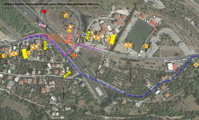 – καθώς και του κλάδου εξόδου της Περιμετρικής Πάτρας προς την οδό Διοδώρου στο ύψος του κόμβου Πατρών-Κ1 (Χ.Θ. 206) στο ρεύμα προς Αθήνα, όπου η κυκλοφορία των οχημάτων θα εξυπηρετείται εναλλακτικά μέσω του επόμενου κόμβου, δηλαδή του Ρίου (ΧΘ 203,8).