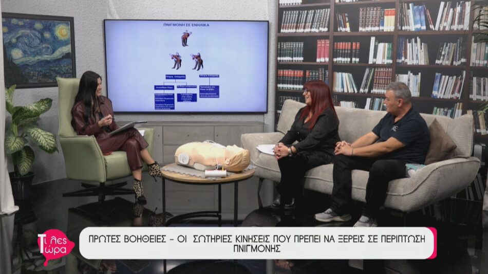 Σε μια συζήτηση που αφορά όλους, η νοσηλεύτρια του Κέντρου Υγείας Καλαμάτας και πιστοποιημένη εκπαιδεύτρια του Ευρωπαϊκού Συμβουλίου Αναζωογόνησης (ERC), Έλενα Μπλάνα, και ο πιστοποιημένος εκπαιδευτής του (ERC), Κωνσταντίνος Μικάλεφ, φιλοξενήθηκαν στην εκπομπή “Τι Λες Τώρα” με την Αναστασία Μάντζαρη, αναδεικνύοντας την κρίσιμη σημασία των Πρώτων Βοηθειών και της άμεσης αντίδρασης. Η κα Μπλάνα με την πιστοποιημένη γνώση της, μίλησε για τον κίνδυνο της πνιγμονής και γιατί είναι τόσο σημαντικό να δράσουμε στα πρώτα λεπτά, επέδειξε πρακτικά τις σωστές κινήσεις που μπορούν να απελευθερώσουν την αναπνευστική οδό και να σώσουν μια ζωή, εξηγώντας πώς εφαρμόζεται σε ενήλικες και σε παιδιά, πότε και πώς πρέπει να ξεκινήσει η ΚΑΡΠΑ αν ο άνθρωπος χάσει τις αισθήσεις του.