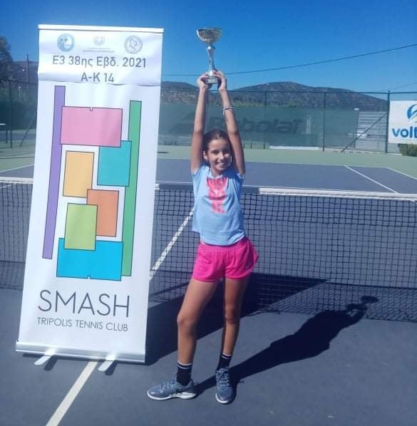 Η νεαρή αθλήτρια του Ομίλου Αντισφαίρισης Καλαμάτας κατέκτησε την πρώτη θέση στο Ε3 Κοριτσιών κάτω των 14 ετών της 38ης βδομάδας που διεξήχθη στον Ο.Α. ΑΤΛΑΣ στην Τρίπολη.