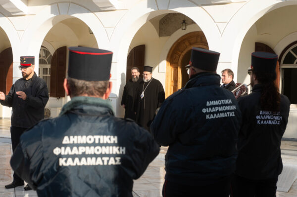 Τα πρωτοχρονιάτικα κάλαντα έψαλαν σήμερα Τετάρτη 31 Δεκεμβρίου 2025, στον Σεβασμιώτατο Μητροπολίτη Μεσσηνίας κ. Χρυσόστομο, ομάδες παιδιών, μεικτή ομάδα στρατευσίμων του 9ου Σ.Π. και της 120 Π.Ε.Α., κα­θώς και η Φιλαρμονική Ορχήστρα του Δήμου Καλαμάτας.