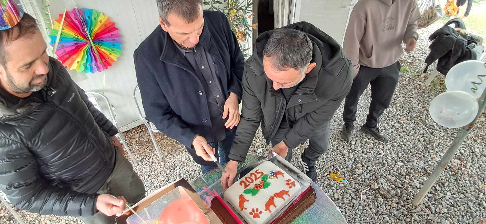 Σε κλίμα εορταστικό και σε ζεστή ατμόσφαιρα, ο Δήμαρχος Σπάρτης, κ. Μιχάλης Βακαλόπουλος, ο Αντιδήμαρχος Διαχείρισης Αδέσποτων Ζώων, Πολιτικής Προστασίας, Τουρισμού και Πληροφορικής, κ. Δημοσθένης Κακούρος, ο Εντεταλμένος Δημοτικός Σύμβουλος Διαχείρισης Αδέσποτων Ζώων, κ. Παναγιώτης Καρούνος και πλήθος από υπηρεσιακούς παράγοντες, εθελοντές και φίλους, έκοψαν την πρωτοχρονιάτικη πίτα και ευχήθηκαν η νέα χρονιά να βρει όλους τους τετράποδους φίλους μας στη ζεστασιά ενός σπιτιού!