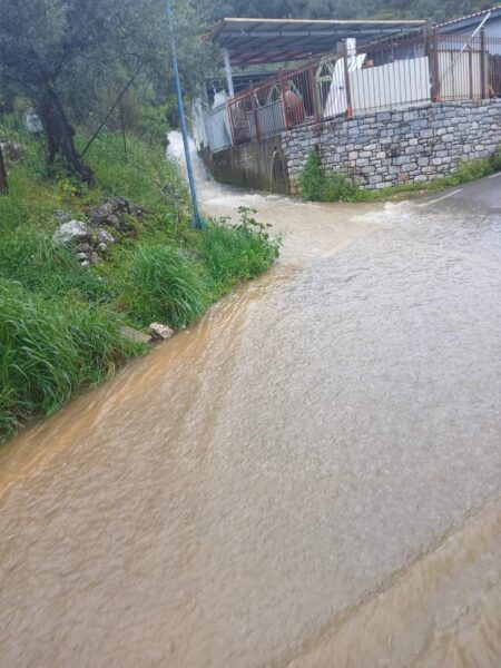 Παράλληλα υποχώρησε κομμάτι του οδοστρώματος στα Μενινά με την διέλευση να διεξάγεται κανονικά.