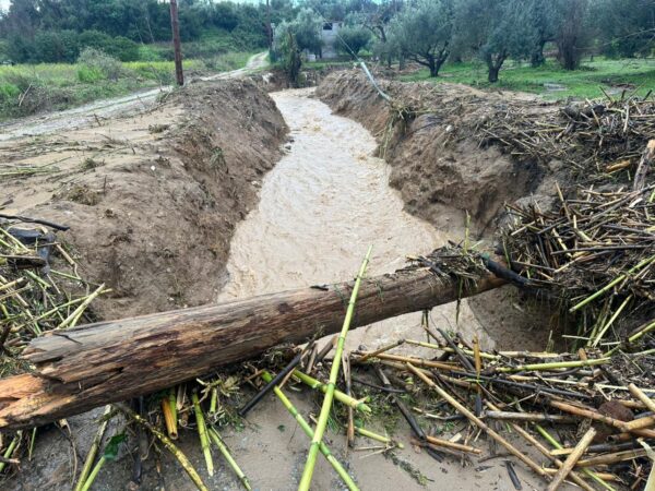 Παράλληλα, φερτά υλικά έχουν κατακλύσει και τον δρόμο προς Στρέφι.