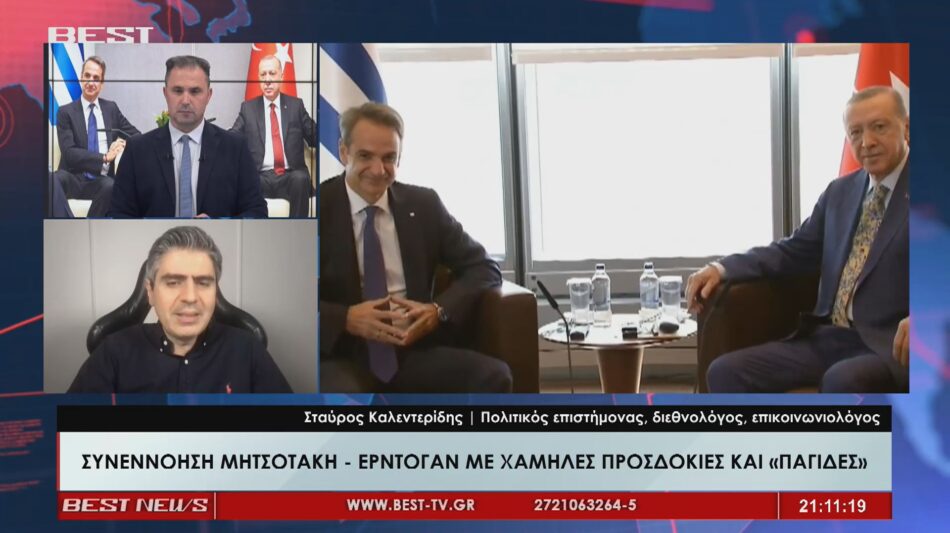 Περιορισμένες οι προσδοκίες για την αυριανή συνάντηση του Έλληνα Πρωθυπουργού με τον Τούρκο πρόεδρο στην Άγκυρα, με τους πολιτικούς αναλυτές να μην περιμένουν ουσιαστική πρόοδο στη λεγόμενη βαριά ατζέντα των ελληνοτουρκικών σχέσεων. Μια επισφαλή κατάσταση περιέγραψε ο Σταύρος Καλεντερίδης με «αδιανόητου επιπέδου κλιμάκωση από την πλευρά της Τουρκίας, παρά τις αντίθετες δηλώσεις από τα κυβερνητικά στελέχη, ότι εδώ πρόκειται για μια επανάληψη των αξιώσεων της Τουρκίας εις βάρος της χώρας». Λίγα 24ωρα πριν τη συνάντηση του Κυριάκου Μητσοτάκη με τον Ρετζέπ Ταγίπ Ερντογάν, ορισμένες δηλώσεις πυροδοτούν περαιτέρω το κλίμα με τον κ. Καλεντερίδη να εστιάζει και σε εκείνες της εκπροσώπου Τύπου του Υπουργείου Εξωτερικών, σημειώνοντας πως «βλέπουμε και θεσμικούς πλέον να μένουν σε αυτή την λανθασμένη εκτίμηση και αφήγημα. Δεν είναι μια πεπατημένη αυτό το οποίο βιώνουμε -το έχουμε πλέον εμπεδώσει- με αυτή την NAVTEX, για παράδειγμα, η οποία έχει διχοτομήσει το Αιγαίο στη μέση. Επομένως εάν δεν έχουμε κάποια εξέλιξη, εάν μείνουμε στα τυπικά, νομίζω θα την γλιτώσουμε πολύ φθηνά και αυτή τη φορά».