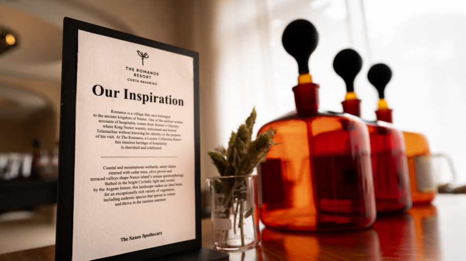Με τη σειρά «Romanos by the Naxos Apothecary», το The Romanos Resort ενισχύει την εμπειρία της αυθεντικής φιλοξενίας με έμπνευση από την περιοχή, αναδεικνύοντας τη δύναμη των μεσσηνιακών βοτάνων μέσα από ένα ταξίδι ευεξίας και αρωμάτων.