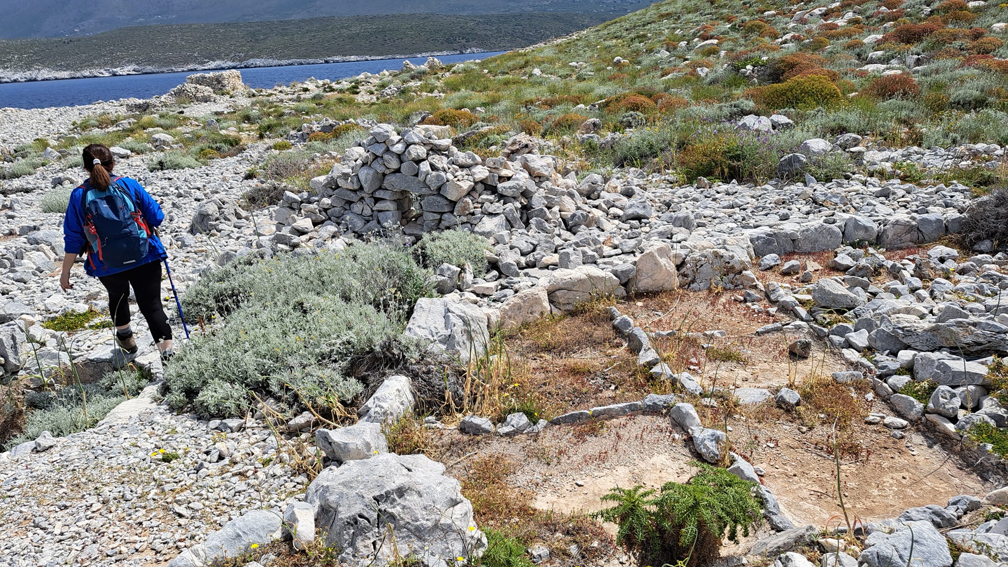 Εκεί οι πέτρες άστραφταν στον ήλιο, το τοπίο γεμάτο αυτοσχέδιες αλυκές δείχνει ότι υπήρξε μεγάλη παραγωγή αλατιού, άνυδρο μεν, γεμάτο χρώματα δε….Περπατώντας δίπλα από πράσινους, κόκκινους θάμνους, που γίνονταν βαθύ καφέ, ,μπεζ, ροζ μοσχομυριστές βιολέτες, μωβ αρωματικά φασκόμηλα, κατακίτρινες ασφάκες και ασπάλαθους φτάσαμε στα τείχη του κάστρου που μας υποδέχθηκαν μισογκρεμισμένα μεν, επιβλητικά ακόμα δε, χωρίς να μας φανερώνουν όλα τα μυστικά τους !