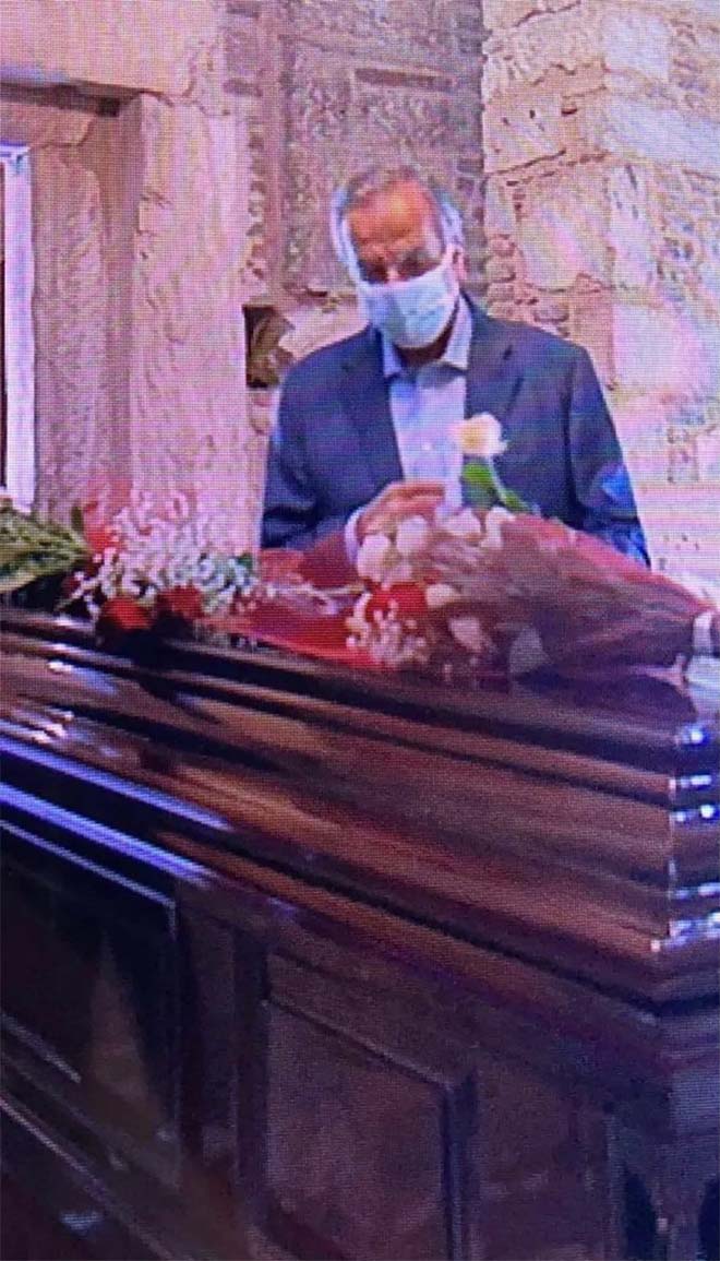 Κρατώντας από ένα λευκό τριαντάφυλλο στα χέρια τους, ο πρώην πρωθυπουργός Αντώνης Σαμαράς και η σύζυγός του Γεωργία μετέβησαν νωρίς το πρωί στο παρεκκλήσι του Αγίου Ελευθερίου, της Μητρόπολης Αθηνών, όπου απέτισαν φόρο τιμής στον Μίκη Θεοδωράκη.
