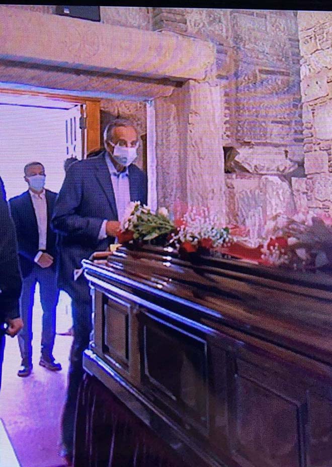 Στο λαϊκό προσκύνημα της σορού του μεγάλου Έλληνα έδωσε το παρών, με τη σύζυγό του, ο πρώην πρωθυπουργός